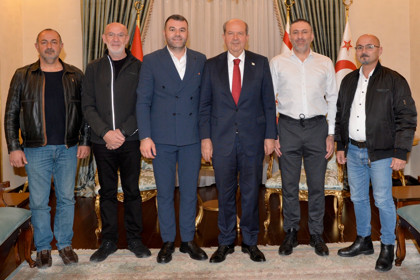 Lefkoşa, 6 Ocak 25 (TAK): Cumhurbaşkanı Ersin Tatar, Barış Yuca başkanlığındaki Motorlu Araç Satıcılar ve İthalatçılar Birliği (MASİB) heyetini kabul etti.
