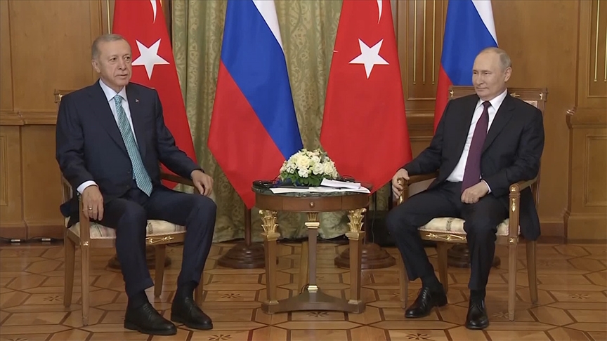Soçi, 4 Eylül 23 (TAK): TC Cumhurbaşkanı Erdoğan'ın Rusya Devlet Başkanı Putin ile görüşmesi başladı.