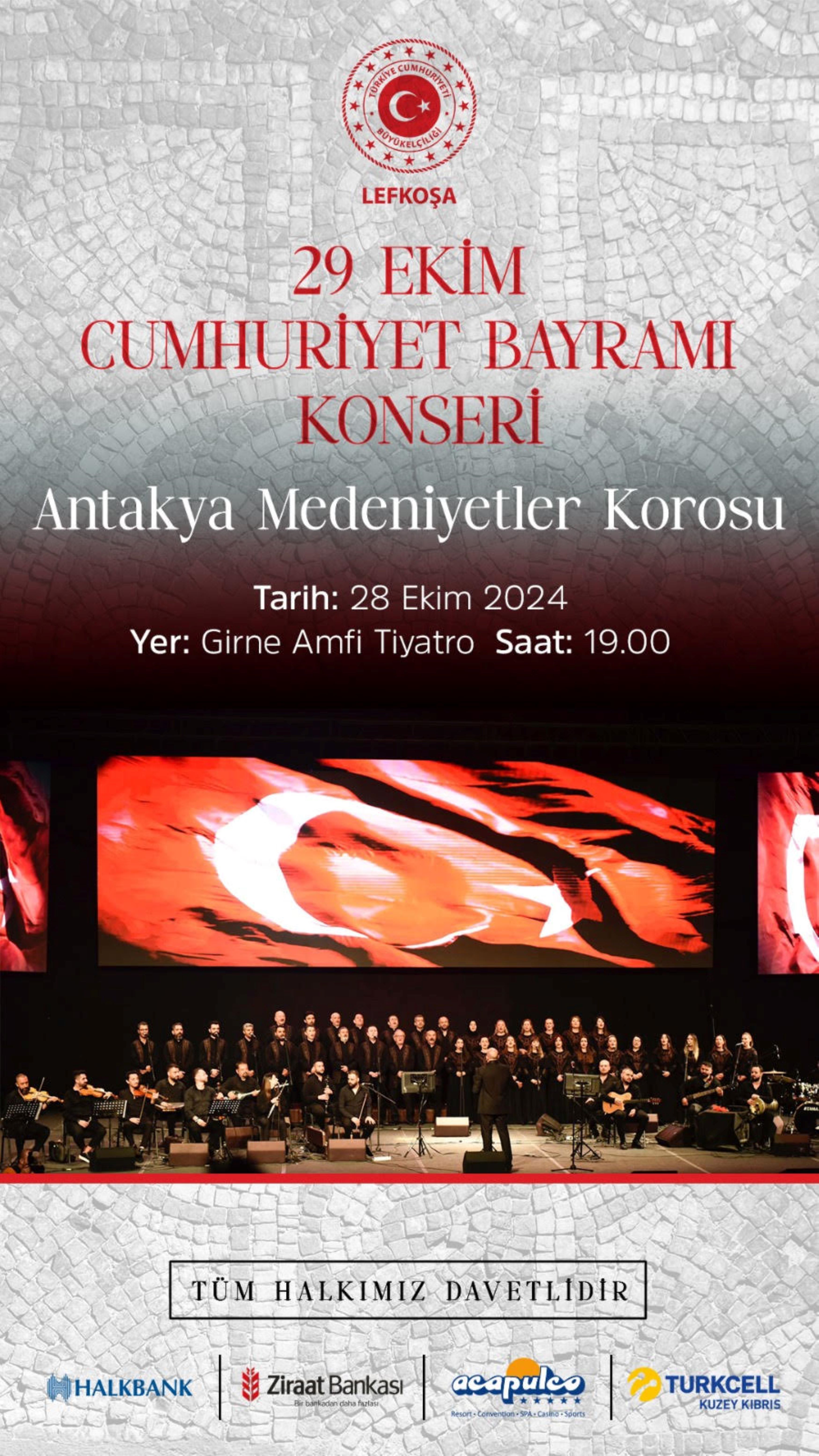 Lefkoşa, 25 Ekim 24 (TAK): Türkiye Cumhuriyeti Lefkoşa Büyükelçiliği, 29 Ekim Cumhuriyet Bayramı dolayısıyla pazartesi günü konser düzenliyor.