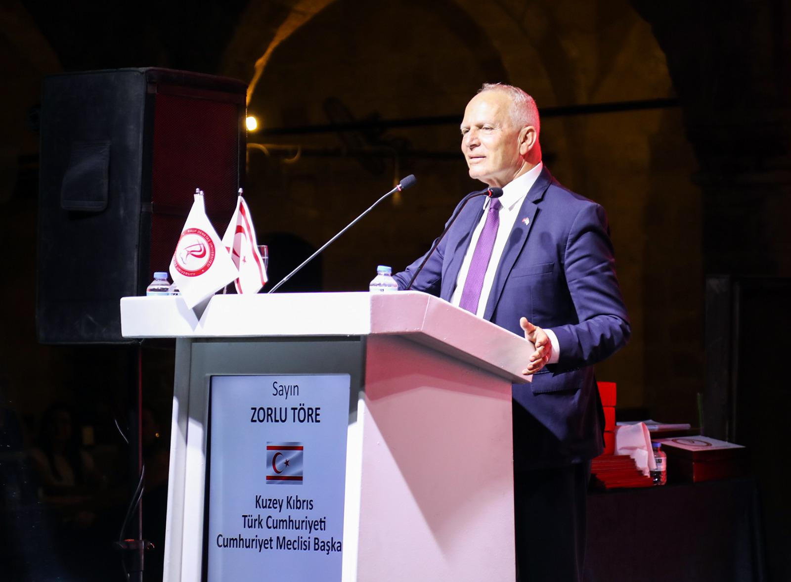 Lefkoşa, 15 Temmuz 23 (TAK): Cumhuriyet Meclisi Başkanı Zorlu Töre, Rauf Denktaş Üniversitesi 2022-2023 öğretim yılı mezuniyet törenine katıldı.