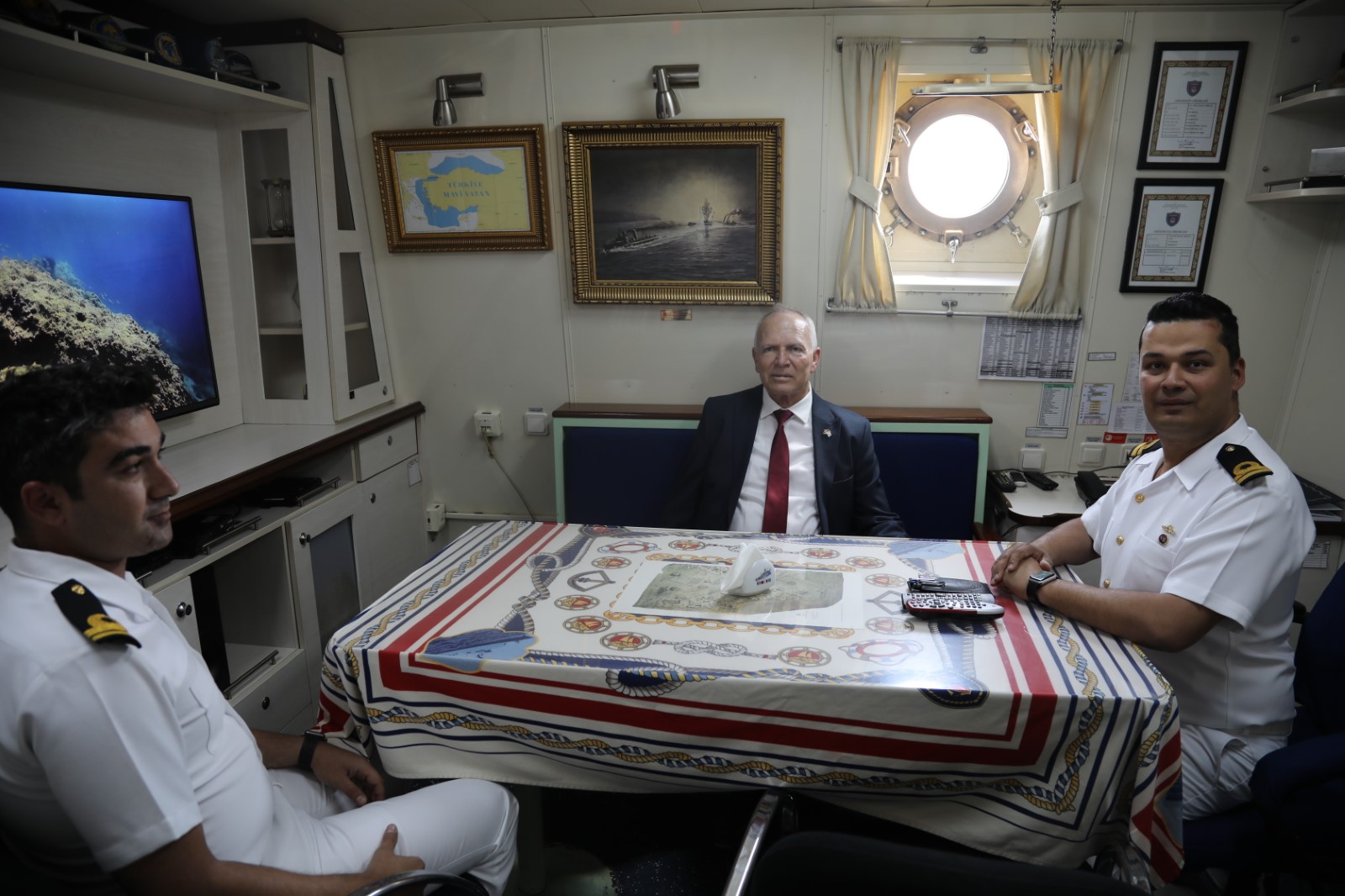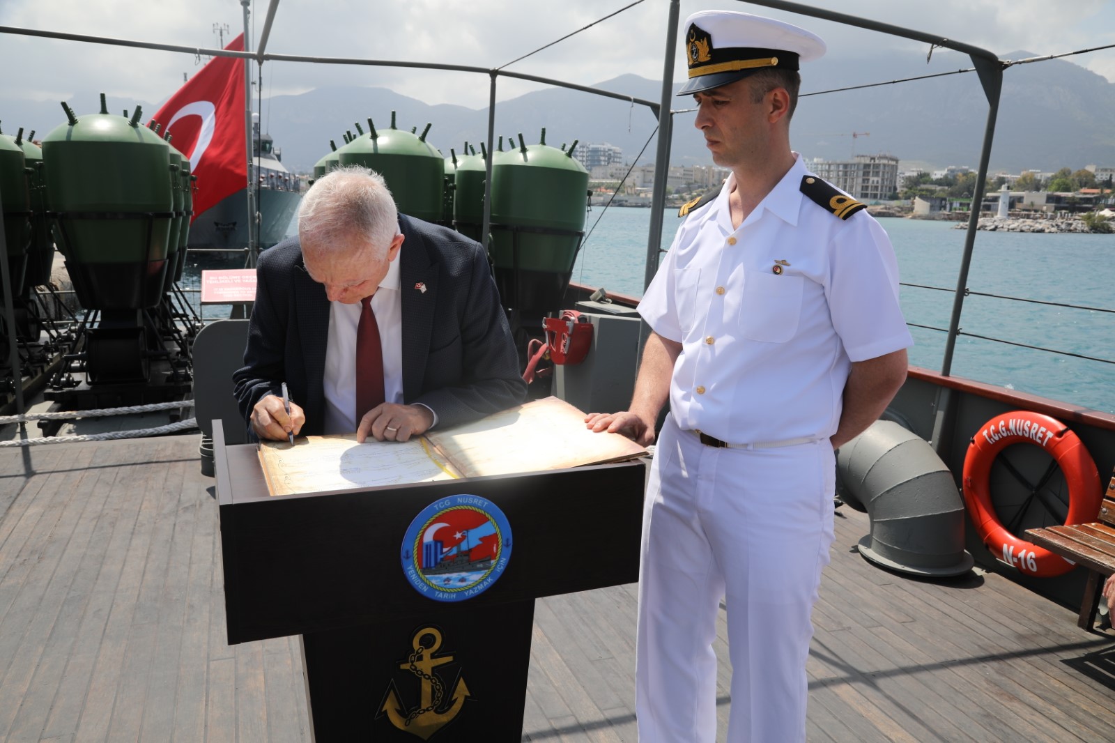 Lefkoşa, 12 Mayıs 24 (TAK): Cumhuriyet Meclisi Başkanı Zorlu Töre, Girne Limanı'na demirli TCG Nusret Müze Gemisi ile TCG Karataş gemilerini ziyaret etti.