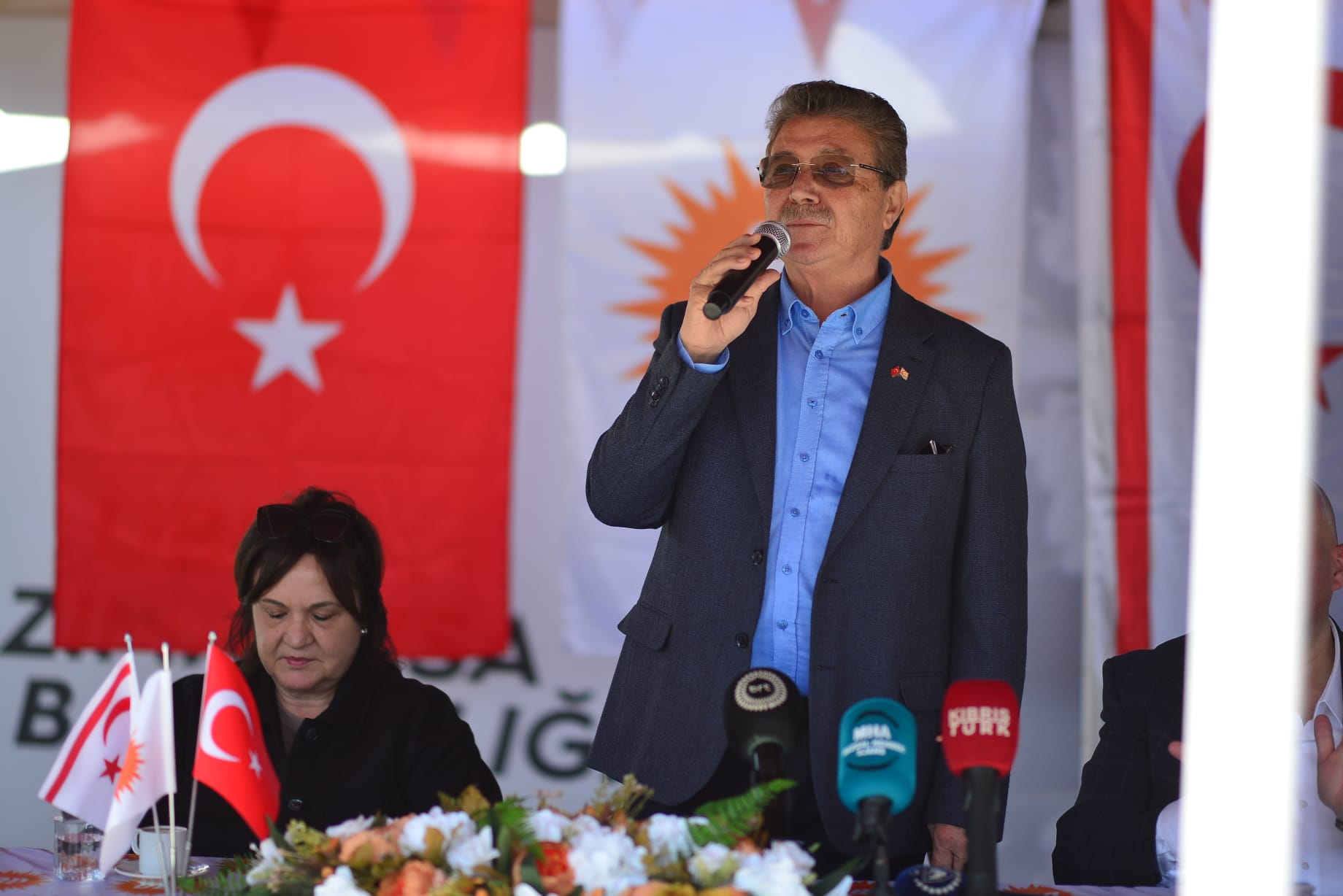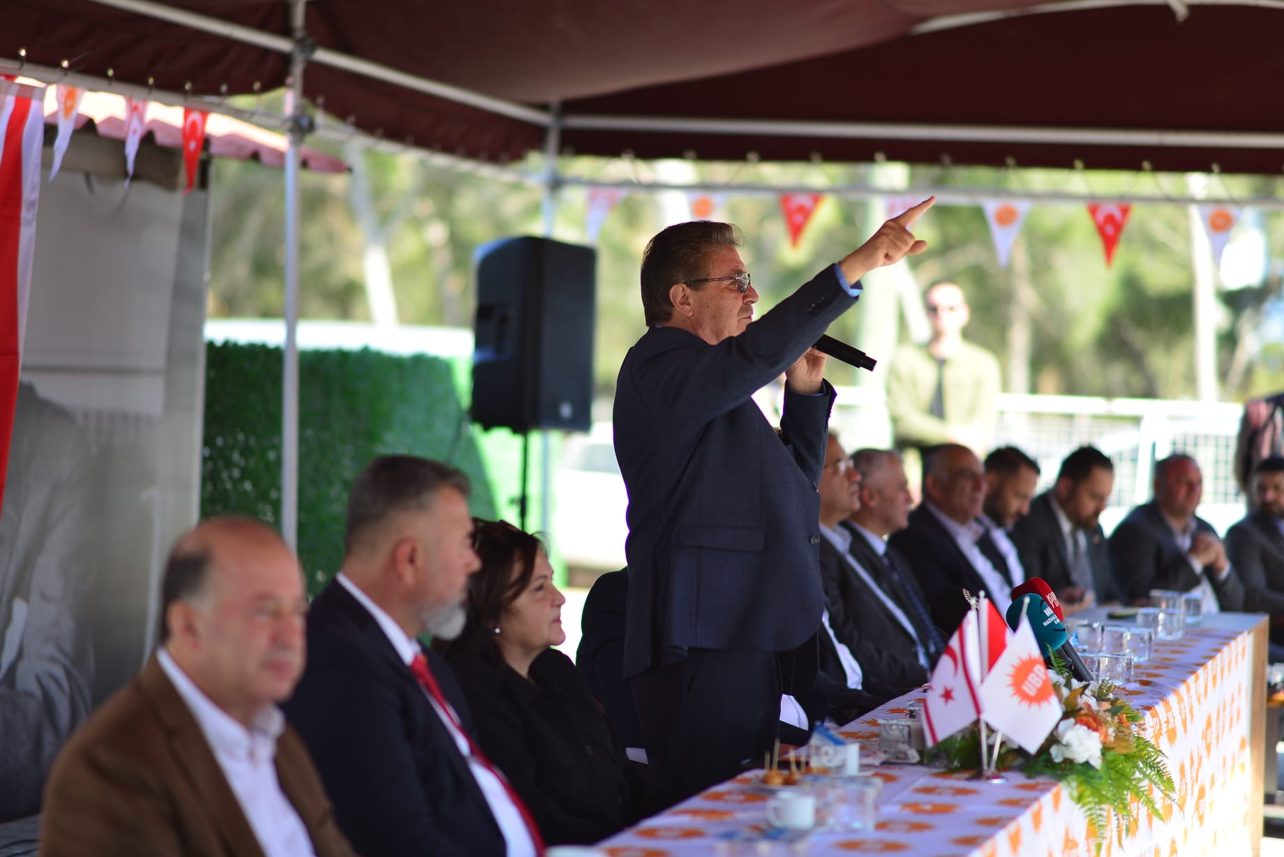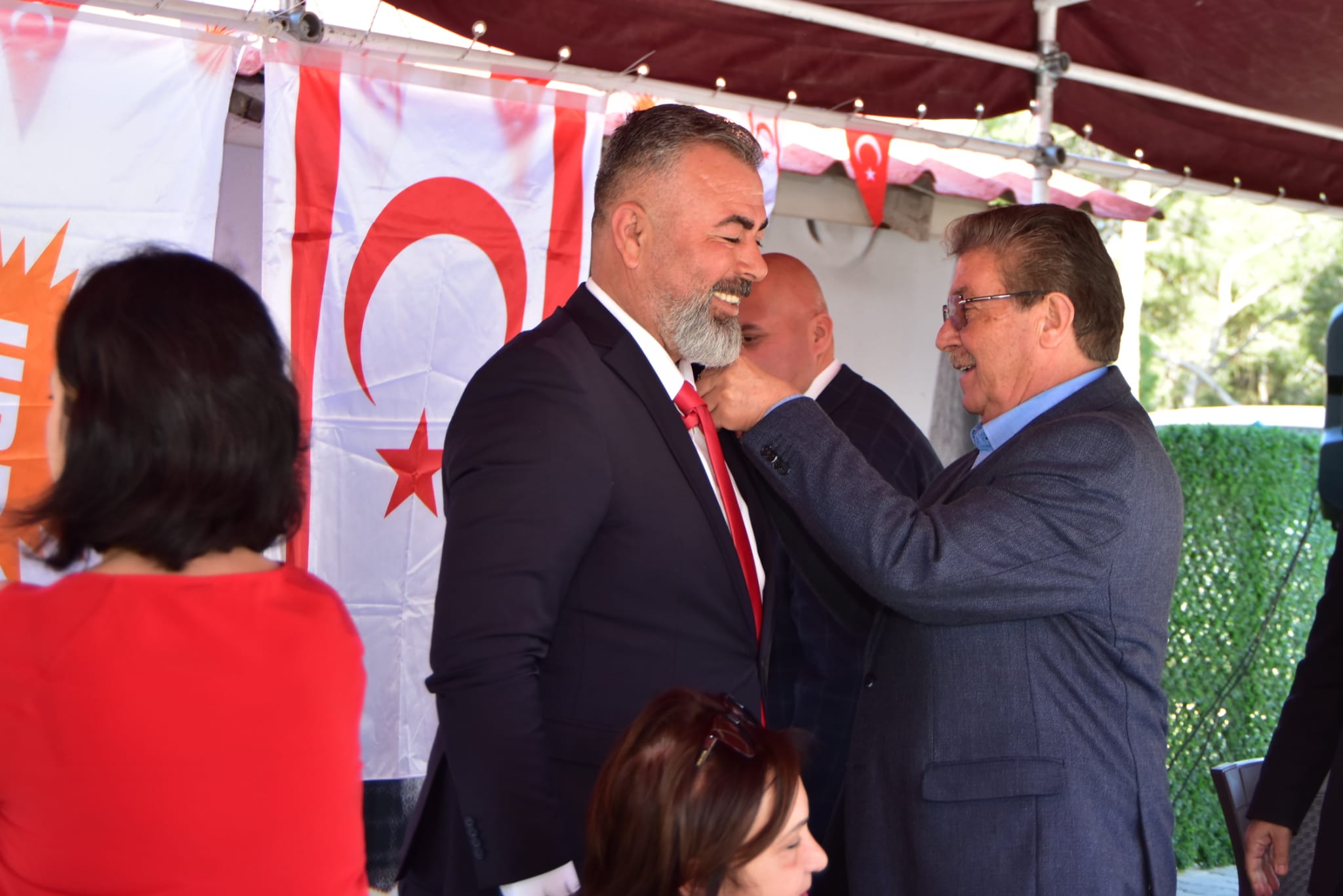 Lefkoşa, 2 Şubat 25 (TAK): Ulusal Birlik Partisi Genel Başkanı ve Başbakan Ünal Üstel, UBP’ye katılan Beyarmudu Belediye Başkanı Bülent Bebek'e rozet taktı.