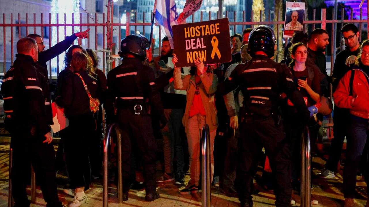 Yakınları Gazze'de esir tutulan İsrailliler, Tel Aviv'de otoyolu trafiğe kapattı