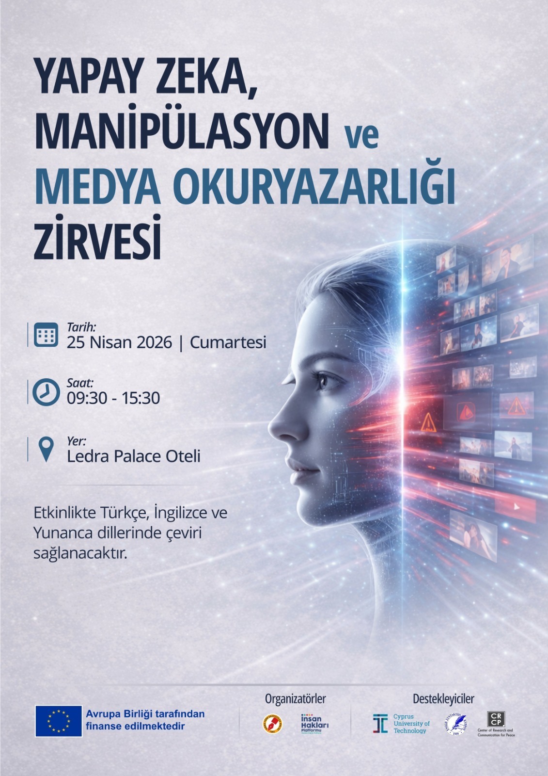 Lefkoşa, 9 Nisan 26 (TAK): Yapay zeka, manipülasyon ve medya okuryazarlığının gazeteciler ve akademisyenler tarafından ele alınacağı etkinlik düzenleniyor.