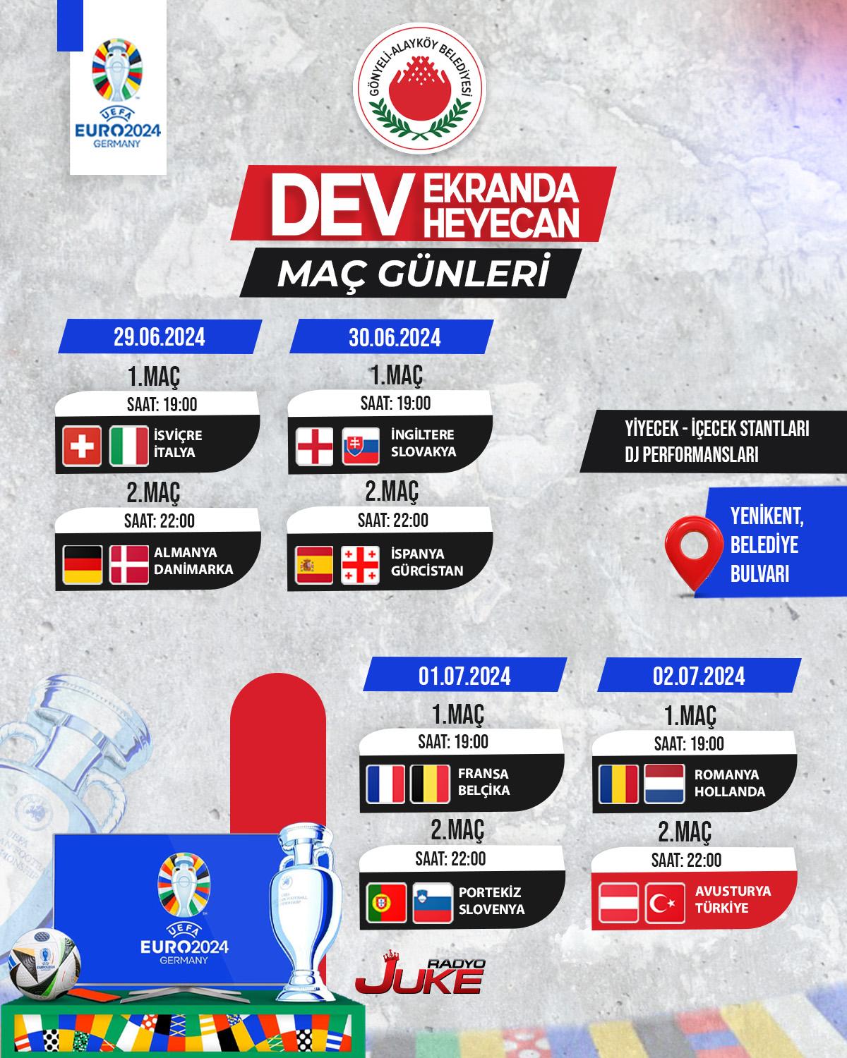 ve Radyo Juke işbirliğiyle, UEFA Euro 2024 maçları, yarından itibaren Yenikent