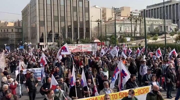 Atina, 17 Nisan 24 (TAK): Yunanistan İşçi Sendikaları Konfederasyonunun (GSEE) çağrısıyla ülke genelinde işçiler, ekonomik şartların iyileştirilmesi talebiyle 24 saatlik greve gitti.