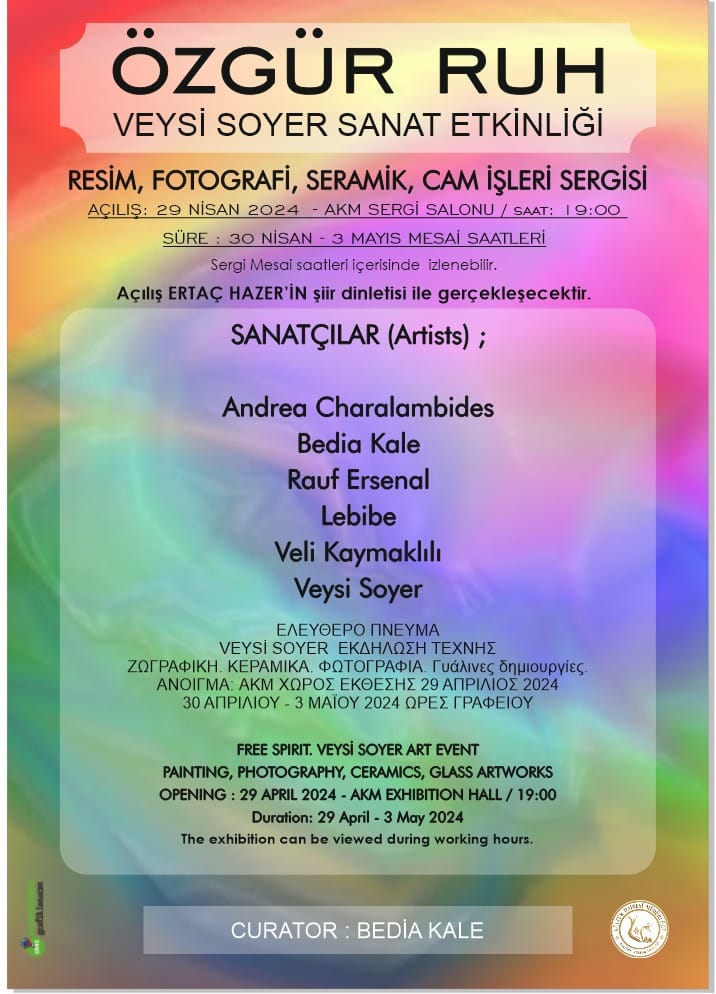 Lefkoşa, 22 Nisan 24 (TAK): Veysi Soyer’in organizasyonuyla farklı disiplinlerden sanatçıları bir araya getiren “Özgür Ruh” adlı karma sergi, 29 Nisan Pazartesi günü açılıyor.