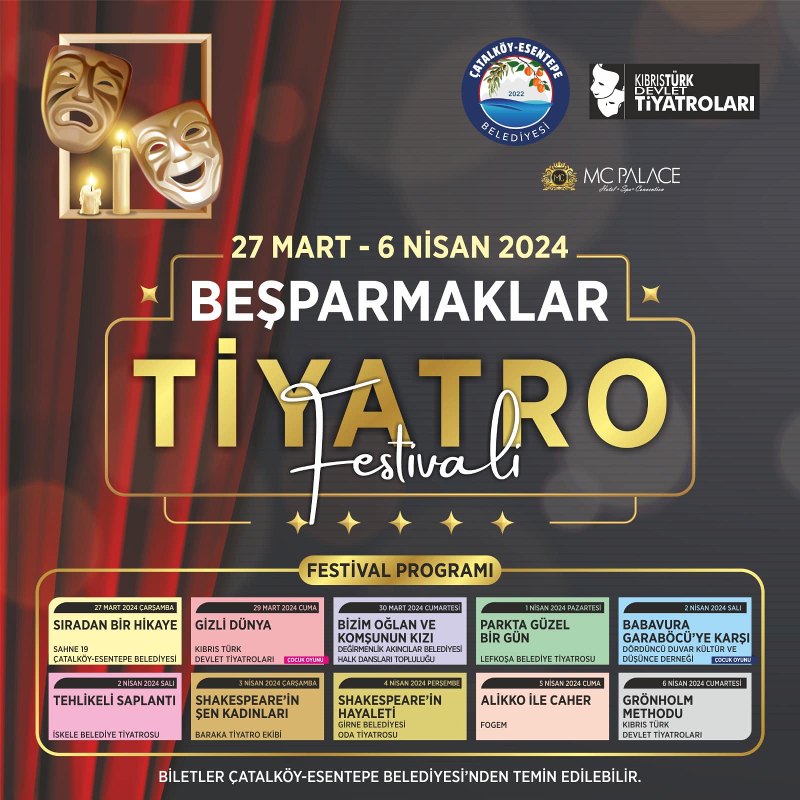 Lefkoşa, 22 Mart 24 (TAK): Beşparmaklar Tiyatro Festivali, KKTC genelinden çeşitli tiyatro ekiplerinin katılımıyla 27 Mart - 6 Nisan tarihleri arasında Çatalköy Erol Avgören Kültür Merkezi'nde yer alacak.