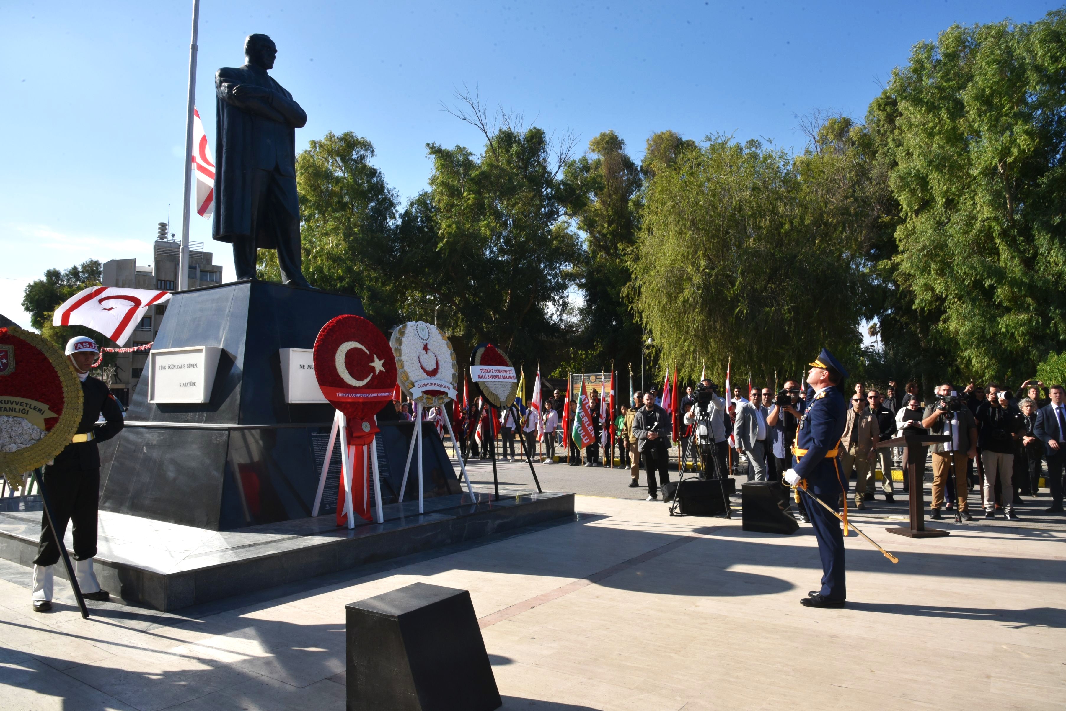 Lefkoşa, 15 Kasım 25 (TAK): KKTC’nin 42. kuruluş yıl dönümü nedeniyle Girne Kapısı’ndaki Atatürk Anıtı önünde tören düzenlendi.