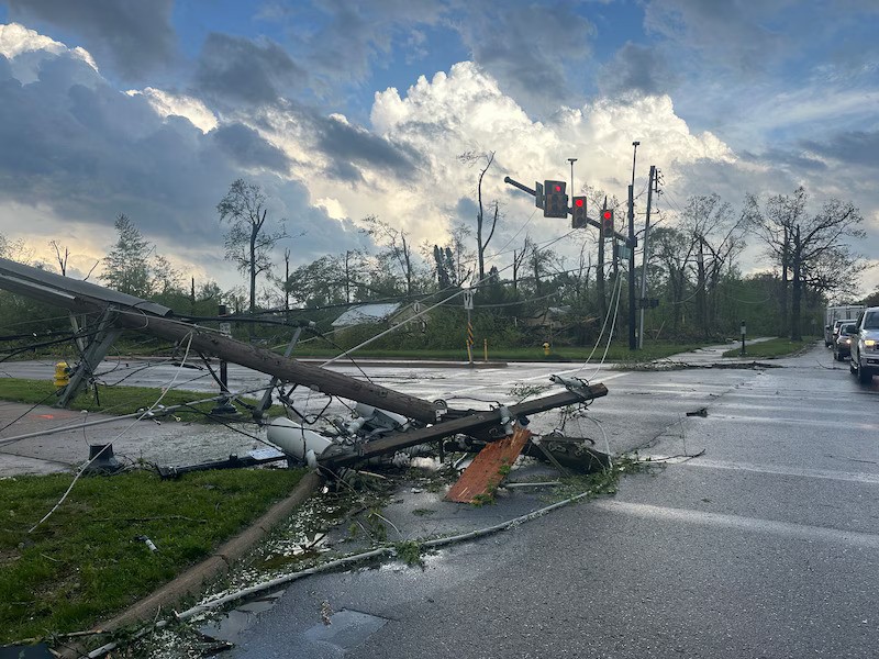 İstanbul, 8 Mayıs 24 (TAK): ABD'nin Michigan eyaletindeki hortum nedeniyle bir lojistik şirketine ait kısmen çöken depoda 50 kişi mahsur kaldı.