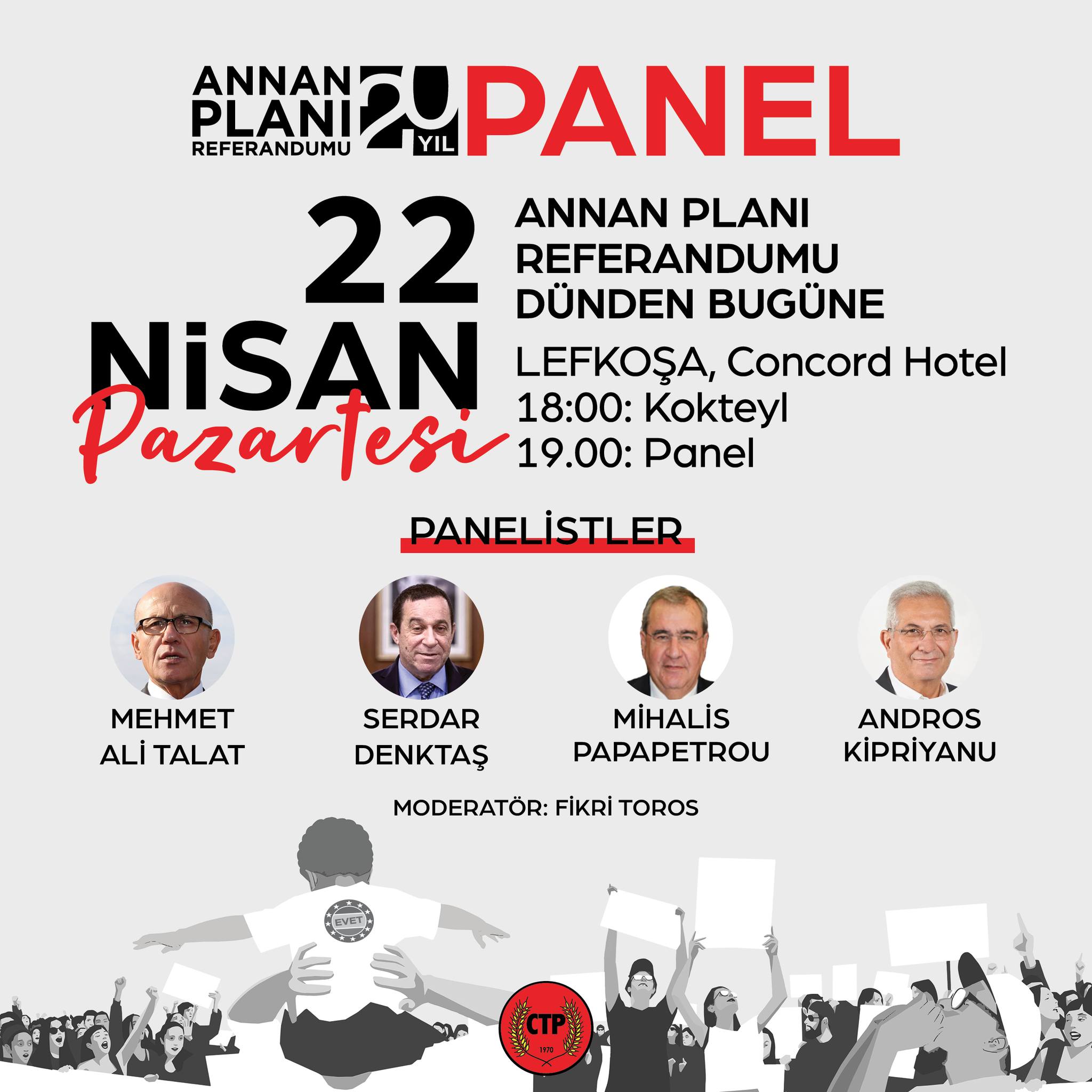 Lefkoşa, 22 Nisan 24 (TAK): CTP, Annan Planı Referandum'unun 20. yılı dolayısıyla bugün panel düzenliyor.