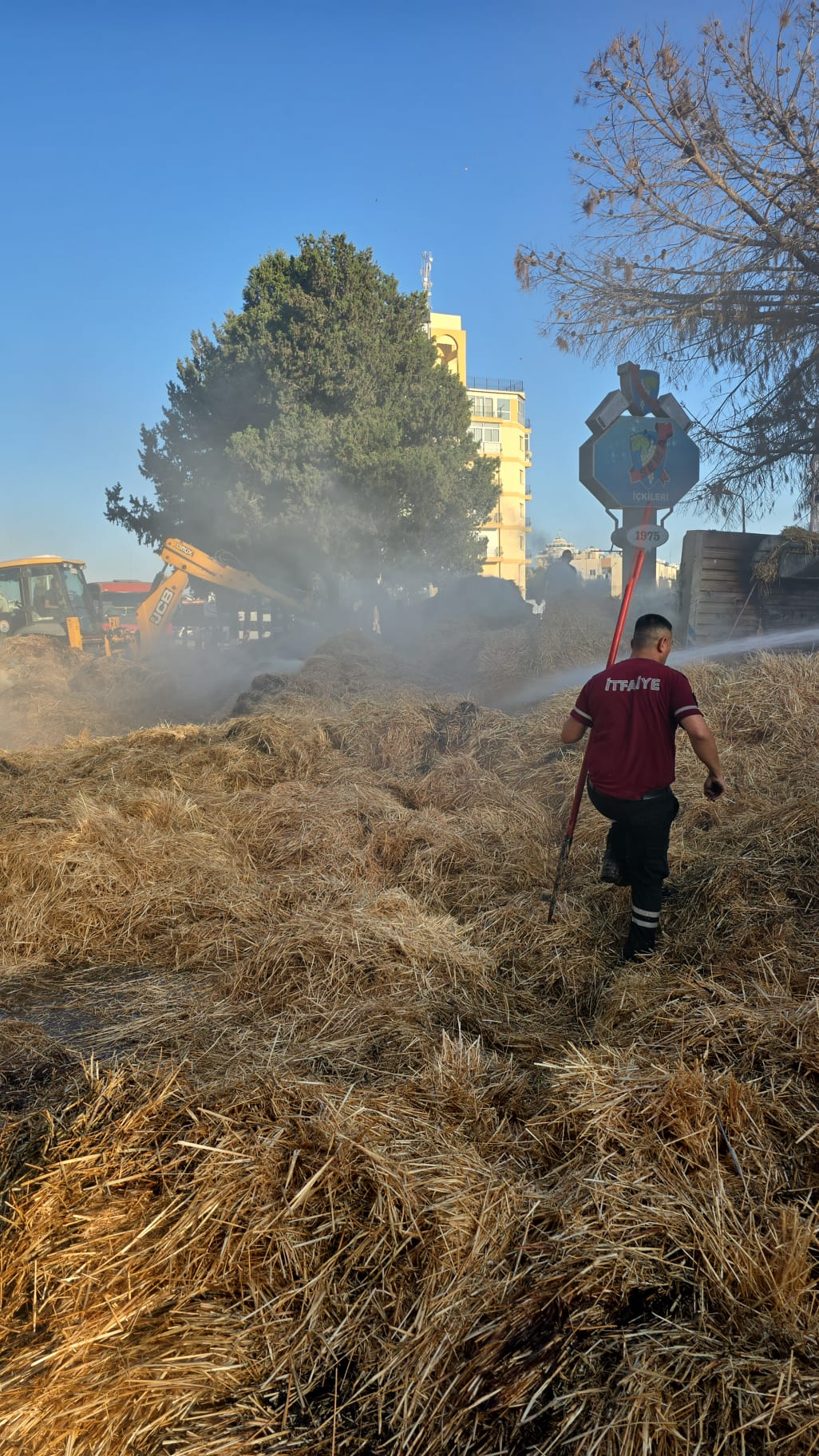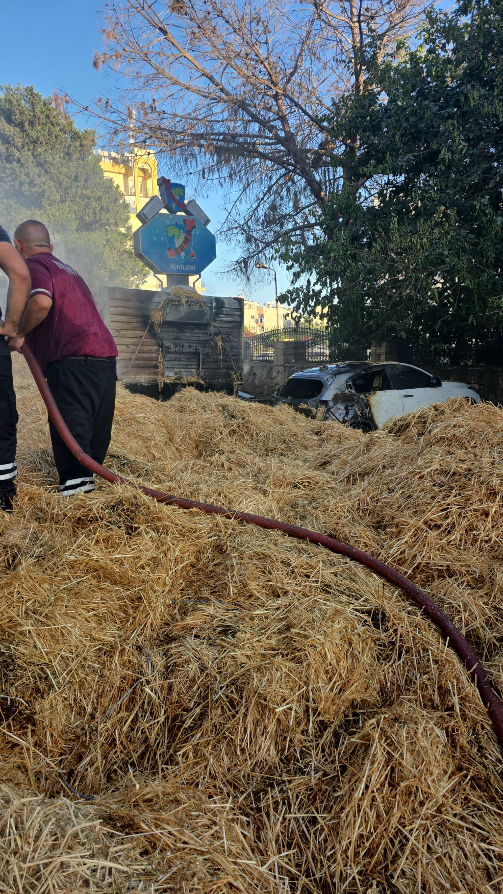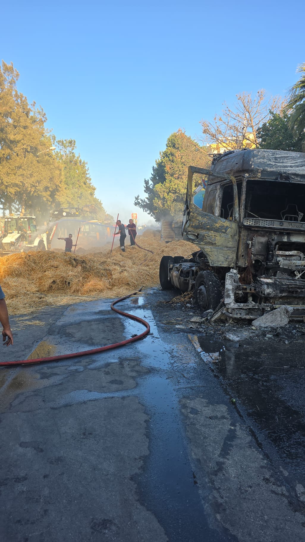 Sema Otel önlerinde, arkasında balya yüklü seyir halindeki tır yandı. Alevler