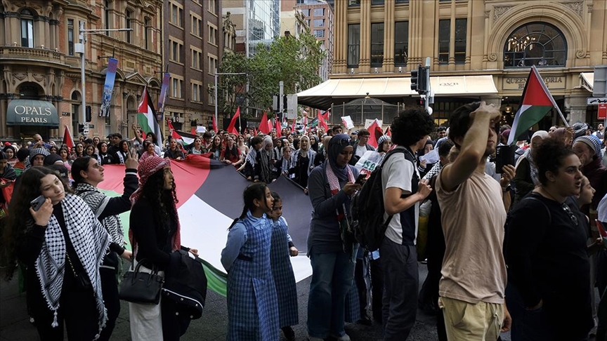 Avustralya'da hükümetin İsrail'e silah satışını protesto eden on binlerce kişi sokaklara indi