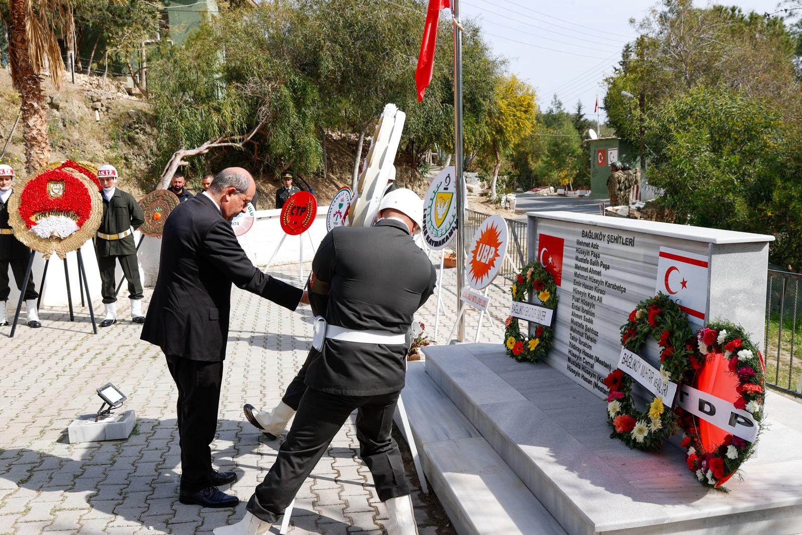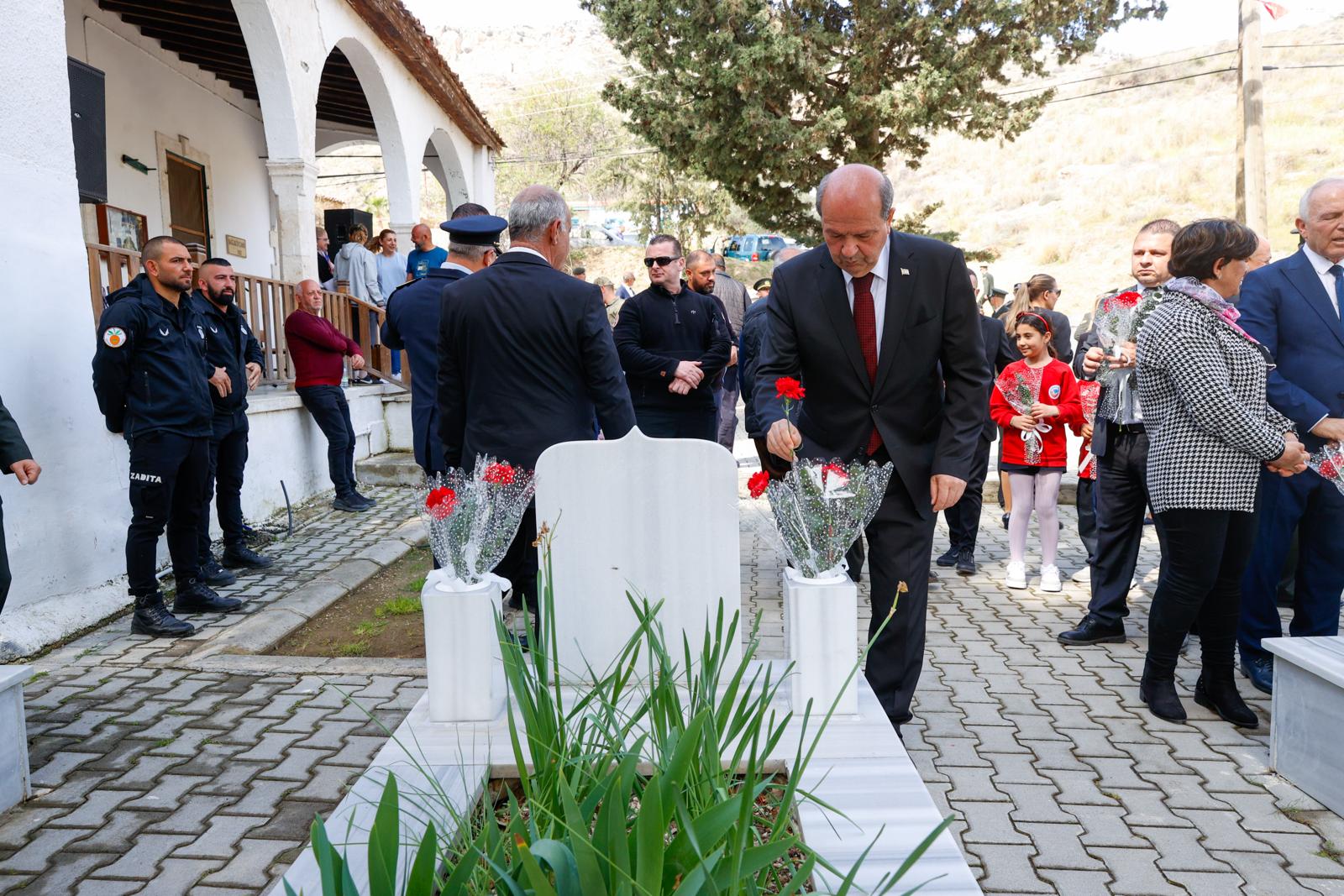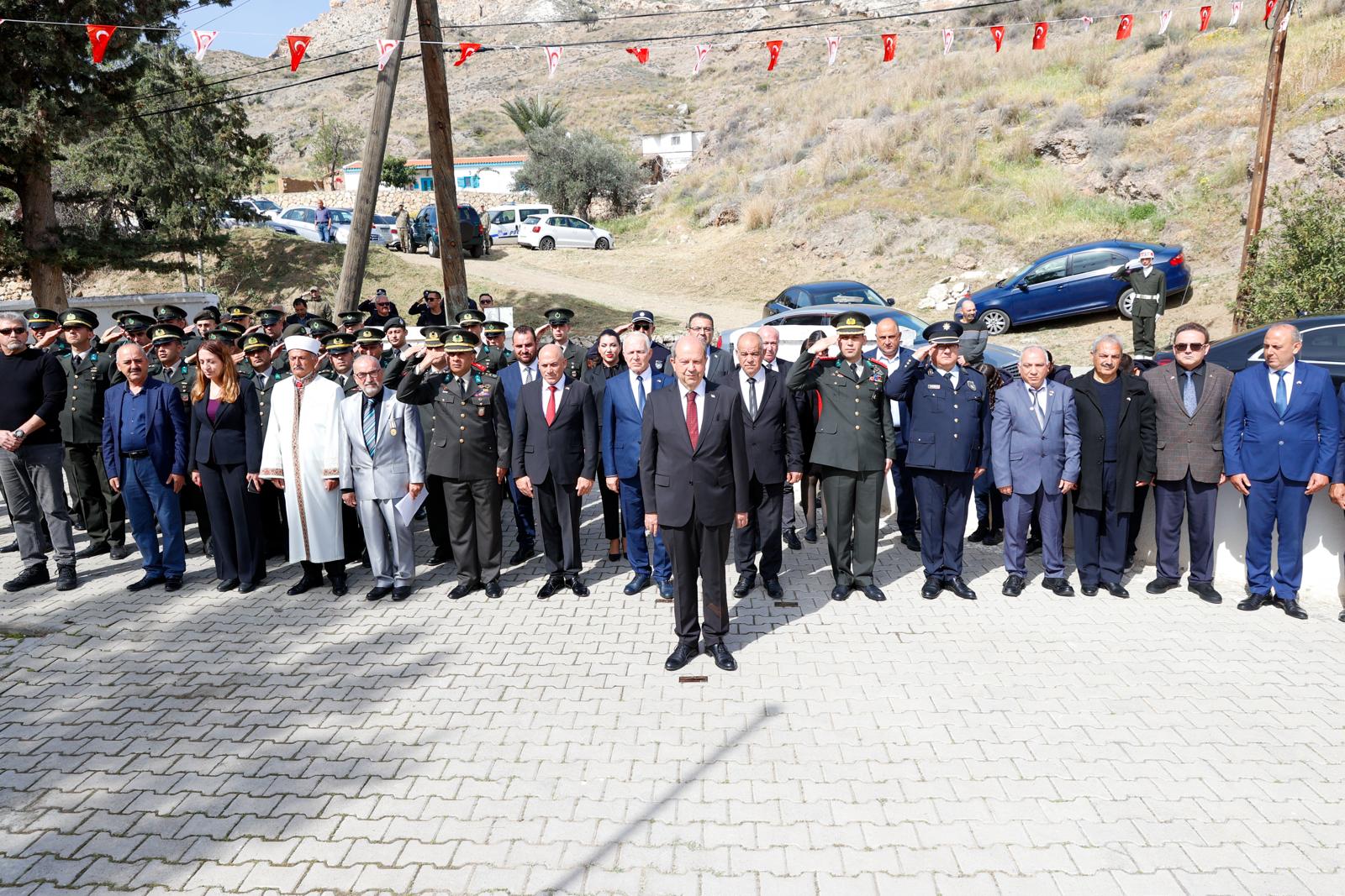 Bağlıköy Şehitliği'nde düzenlenen törene Cumhurbaşkanı Tatar ile Cumhuriyet Meclisi Başkanı Töre de katıldı