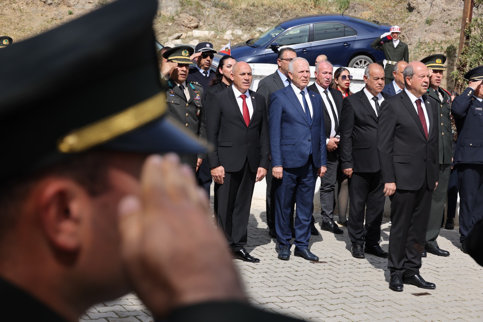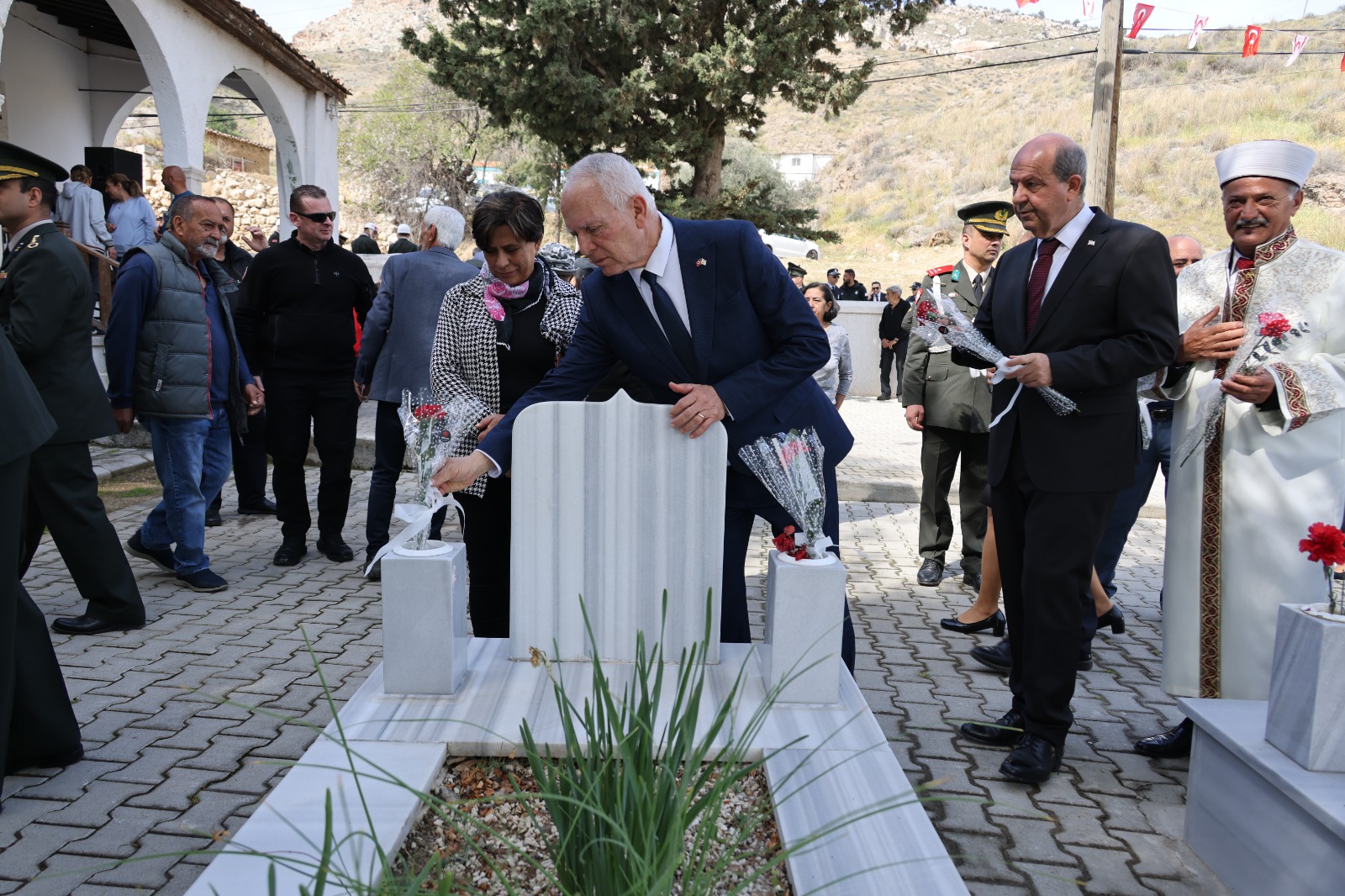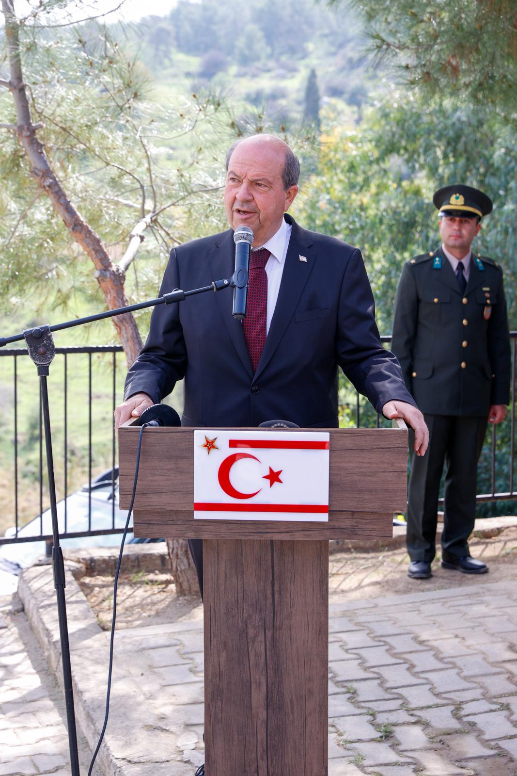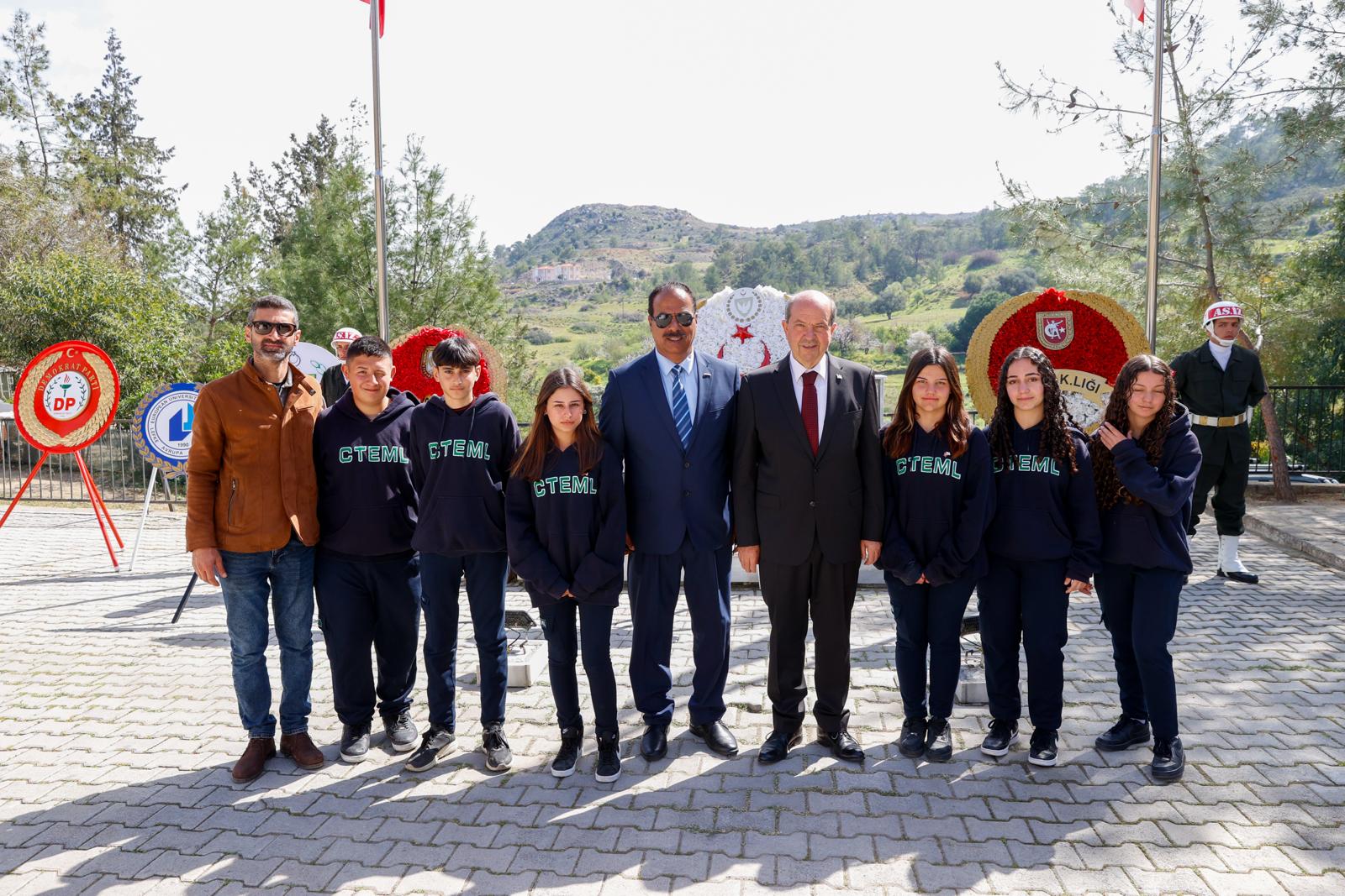 Bağlıköy Şehitliği'nde düzenlenen törene Cumhurbaşkanı Tatar ile Cumhuriyet Meclisi Başkanı Töre de katıldı