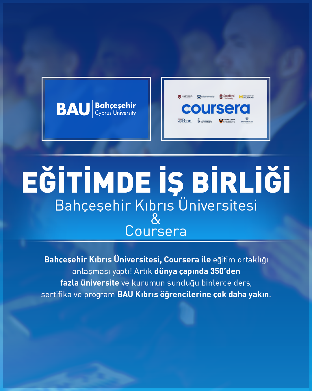 Lefkoşa, 7 Kasım 25 (TAK): Bahçeşehir Kıbrıs Üniversitesi, çevrim içi eğitim platformu Coursera ile iş birliği anlaşması imzaladı.