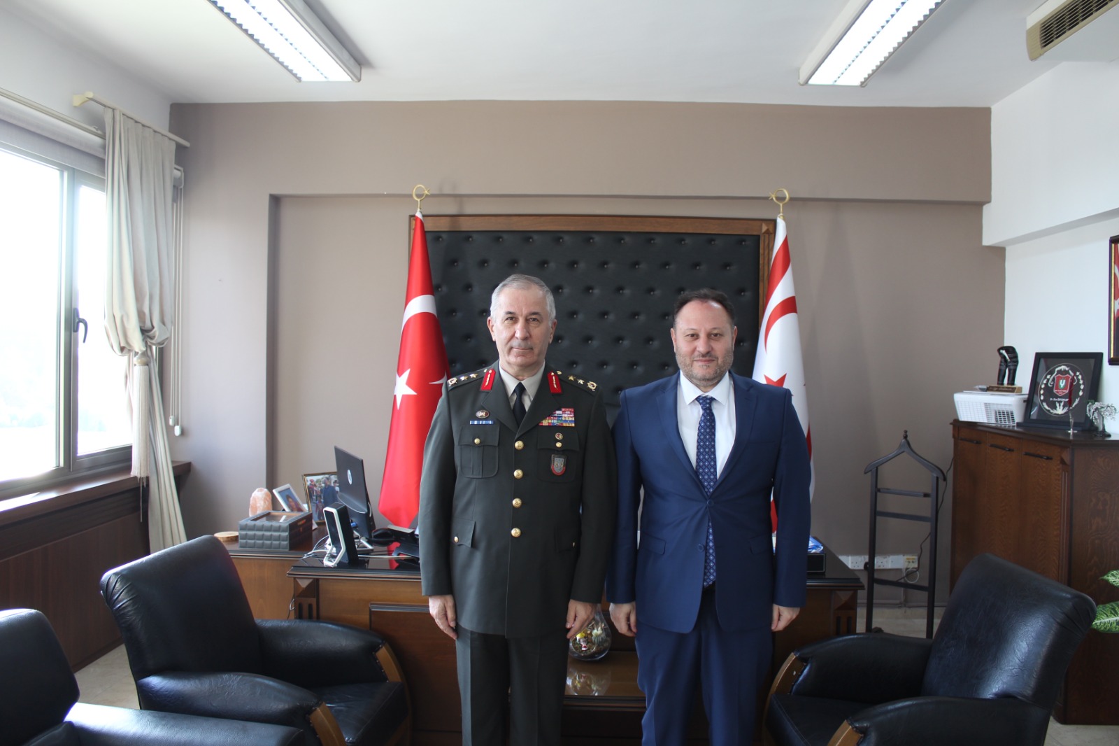Lefkoşa, 9 Aralık 22 (TAK): İçişleri Bakanı Ziya Öztürkler, Kıbrıs Türk Barış Kuvvetleri Komutanı Tümgeneral Sezai Öztürk ile bir araya geldi.