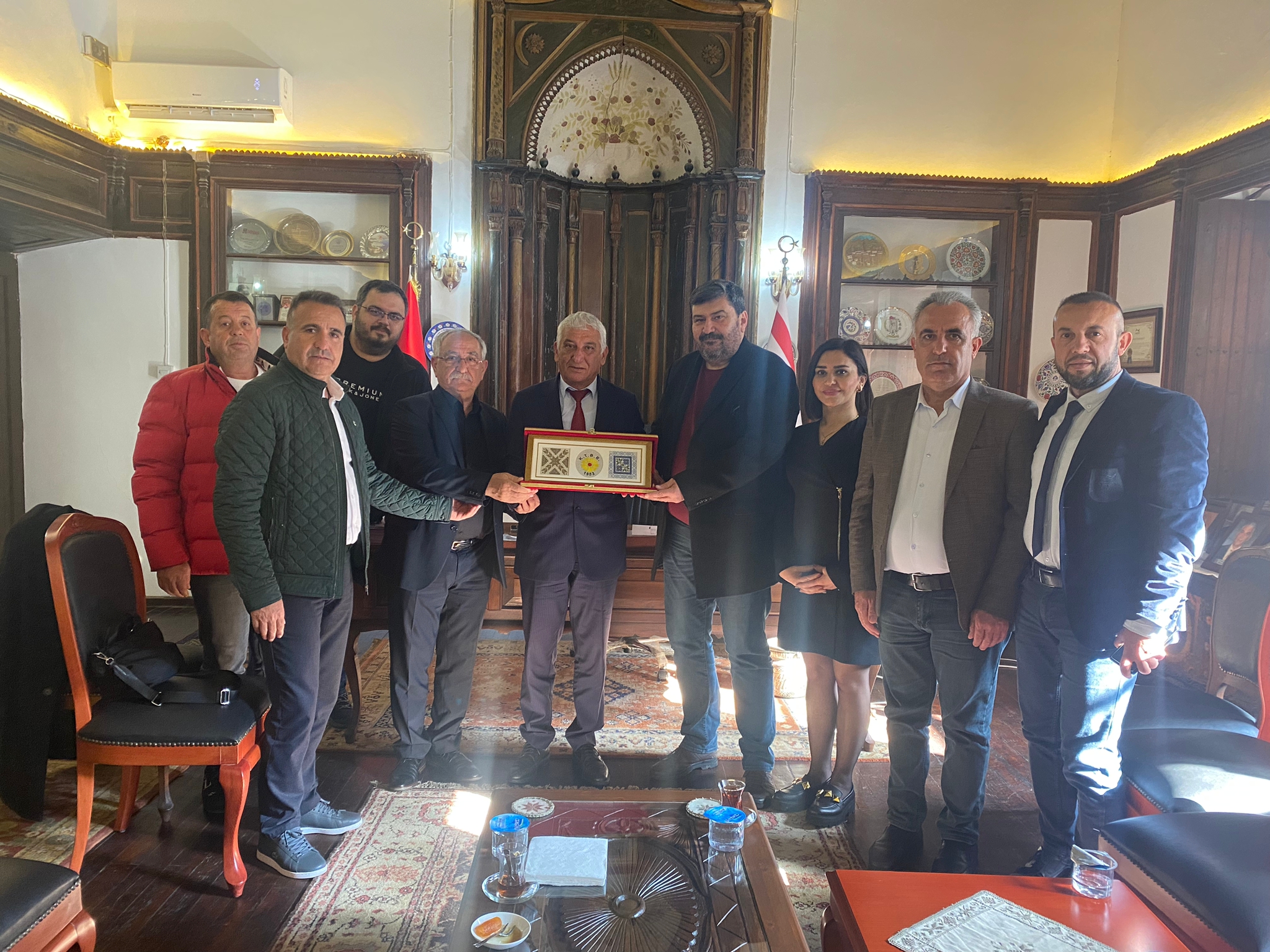 Lefkoşa, 17 Ocak 2023 (TAK): Kıbrıs Türk Belediyeler Birliği ve Güzelyurt Belediye Başkanı Mahmut Özçınar, Doğu Akdeniz Belediyeler Birliği (DABB) Genel Sekreteri Esra Alkan ile Birliğe üye Mersin Mezitli Belediyesi ve Mersin Yenişehir Belediyesi’nden bir heyetle biraraya geldi.