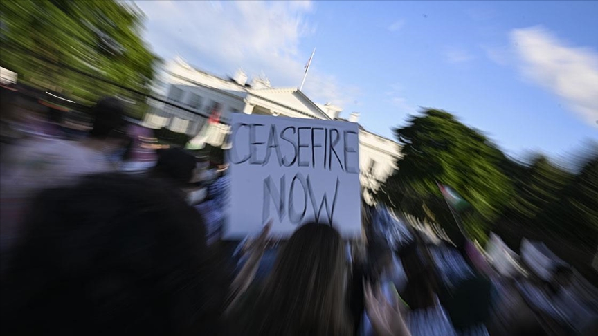 Washington, 29 Mayıs 24 (TAK): Beyaz Saray önünde toplanan yüzlerce kişi, Refah'a saldıran İsrail ile ona koşulsuz destek sağlayan ABD yönetimini protesto etti.