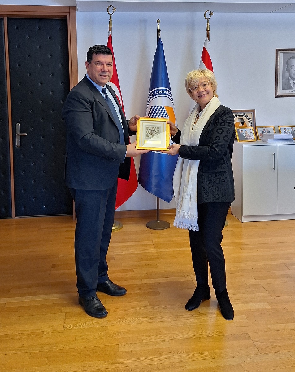 Lefkoşa, 13 Mart 24 (TAK): TC Lefkoşa Büyükelçisi Metin Feyzioğlu’nun eşi Birgül Feyzioğlu, Doğu Akdeniz Üniversitesi (DAÜ) Rektörü Prof. Dr. Hasan Kılıç’ı ziyaret etti.