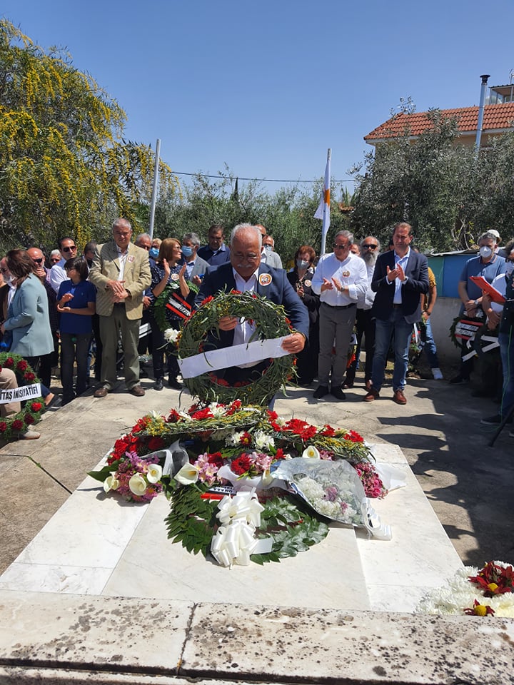 Lefkoşa, 14 Nisan 24 (TAK): Birleşik Kıbrıs Partisi’nden (BKP) bir heyet, 1965’te öldürülen Kostas Mişaulis ve Derviş Ali Kavazoğlu için düzenlenen törenlere katıldı.