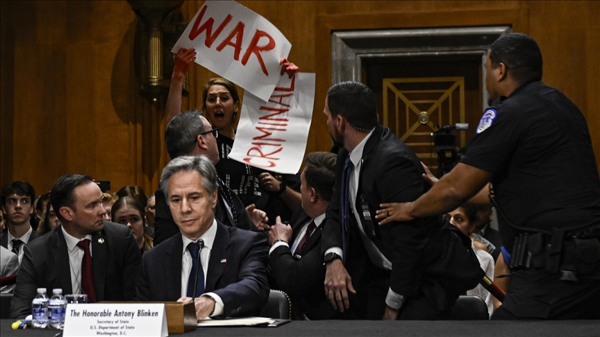 Blinken, Senato'da Filistin destekçisi katılımcılar tarafından protesto edildi: “Blinken bir savaş suçlusudur”