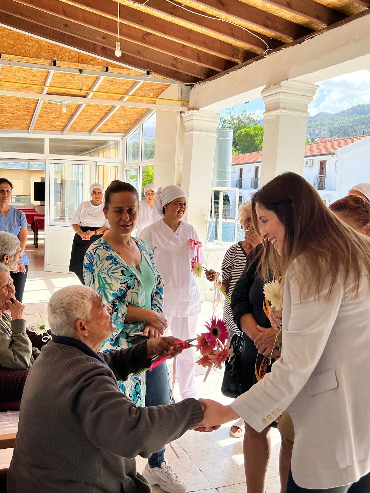 Lefkoşa, 1 Ekim 24 (TAK): Türkiye'nin Lefkoşa Büyükelçisi Yasin Ekrem Serim'in eşi Sevim Çağla Serim, Sosyal Hizmetler Dairesi'ne bağlı Lapta Huzurevi'ni ziyaret etti.