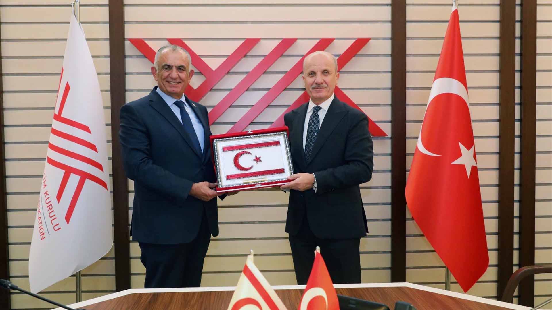 Lefkoşa, 24 Aralık 25 (TAK): Ankara'da temaslarda bulunan Milli Eğitim Bakanı Nazım Çavuşoğlu Yükseköğretim Kurulu (YÖK) Başkanı Prof. Dr. Erol Özvar ile bir araya geldi.
