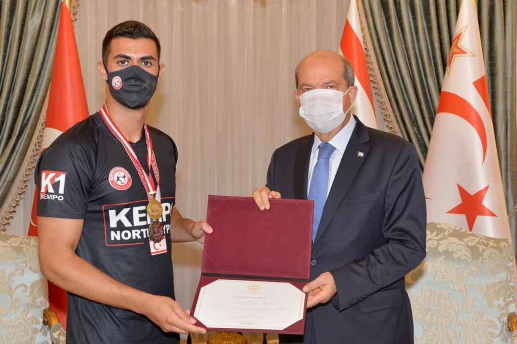 Lefkoşa, 7 Temmuz 22 (TAK): Cumhurbaşkanı Ersin Tatar, KKTC Kempo Savunma Sporları Federasyonu yönetimini ve başarı elde eden sporcuları kabul etti.