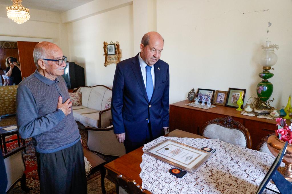 Lefkoşa, 11 Nisan 24 (TAK): Cumhurbaşkanı Ersin Tatar, Ramazan Bayramı vesilesiyle Kıbrıs Gazisi Halit Seyran, TMT Mücahidi Şenay Kuyucuoğlu ile şehit Fuat Feridun ve şehit Ramiz Turan’ın yakınlarını ziyaret etti.