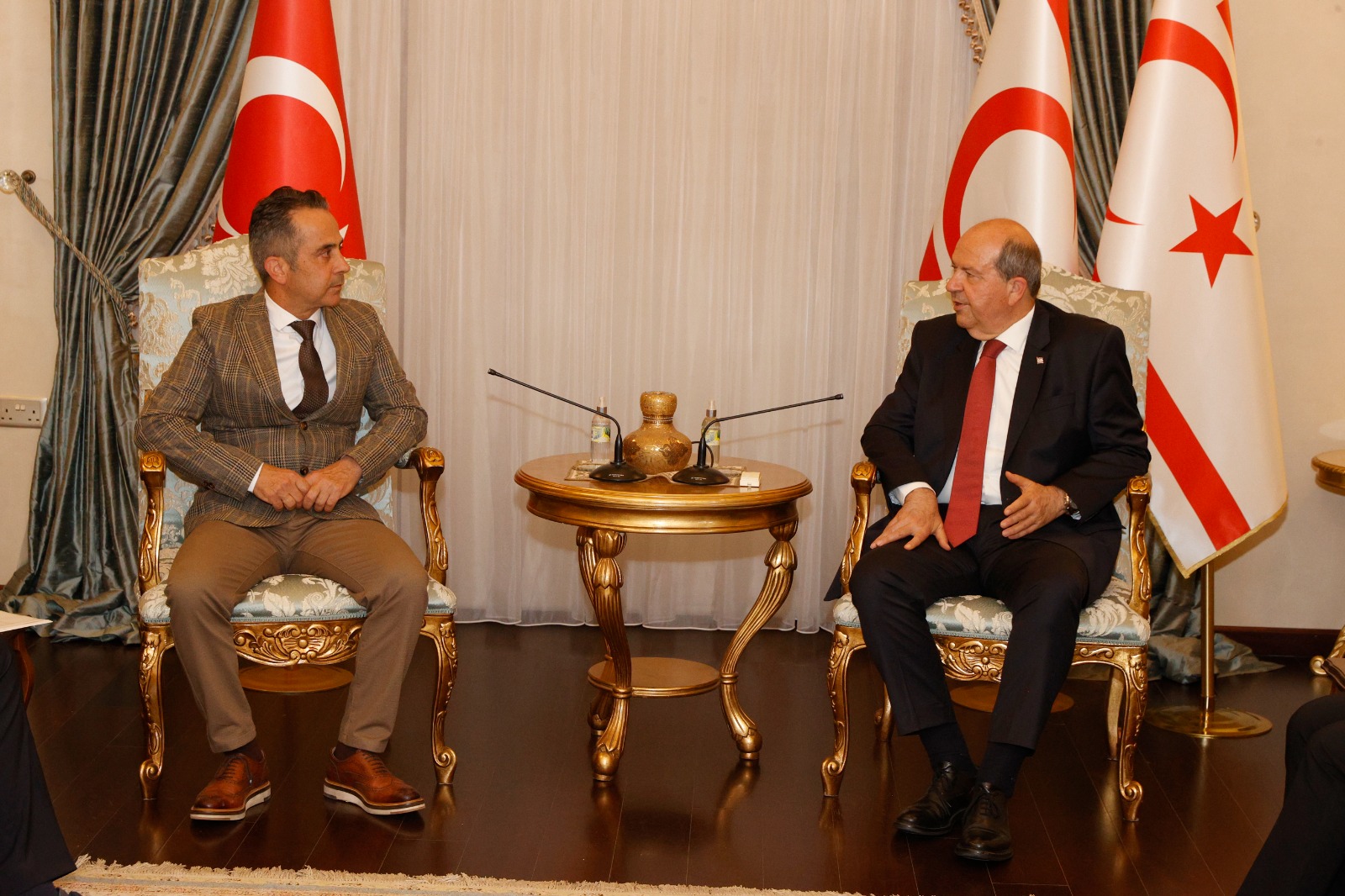 Lefkoşa, 24 Mart 23 (TAK): Cumhurbaşkanı Ersin Tatar, Diş Haftası dolayısıyla Kıbrıs Türk Diş Tabipleri Odası Başkanı Halil Bakkaloğlu ve beraberindeki heyeti kabul etti.