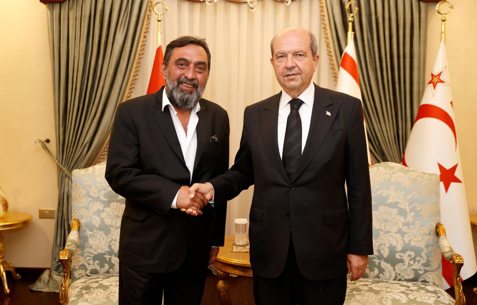 Lefkoşa, 26 Eylül 23 (TAK): Cumhurbaşkanı Ersin Tatar, tiyatrocu, şair ve yazar Yenilmez Sanat Merkezi kurucusu Ahmet Yenilmez’i kabul etti