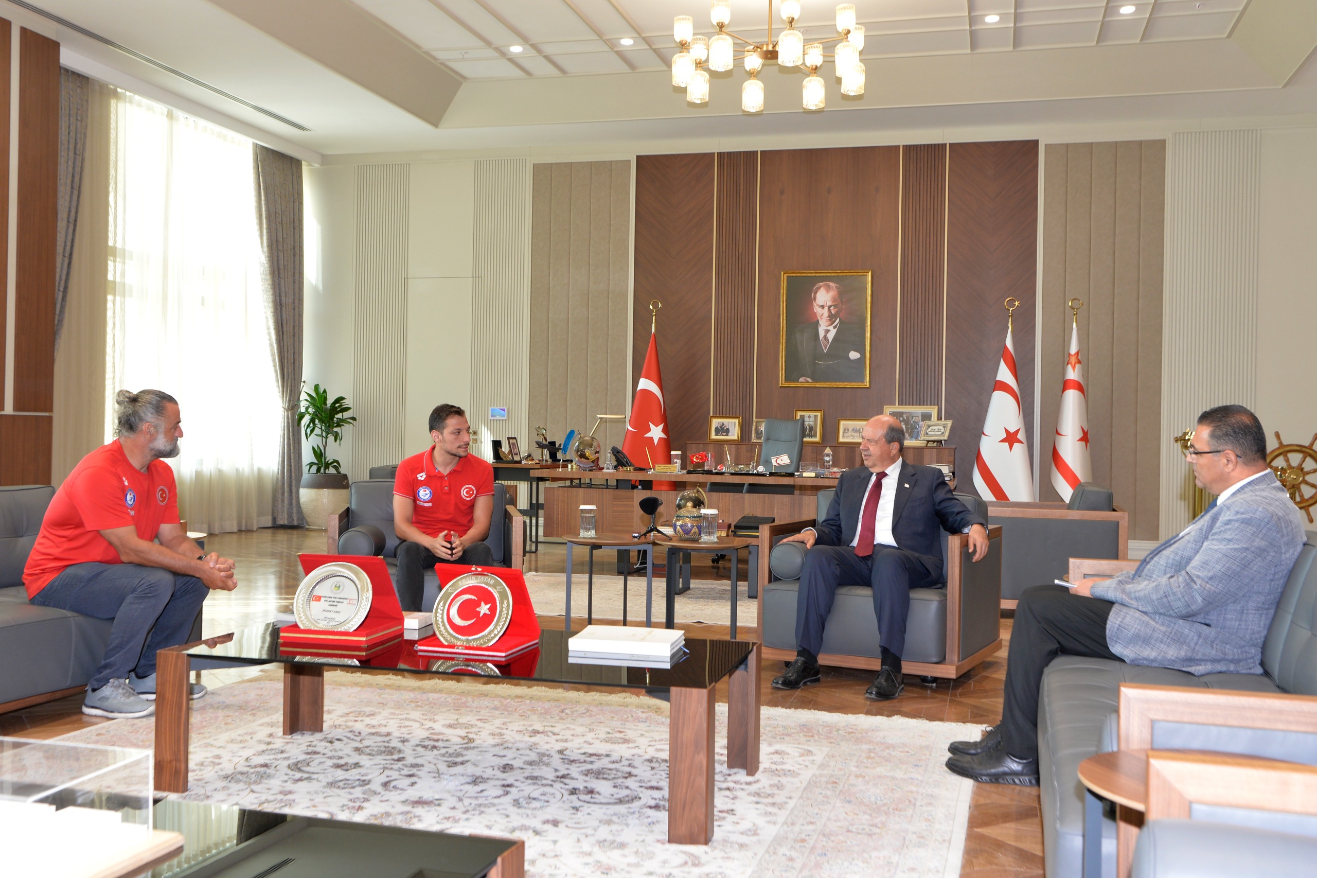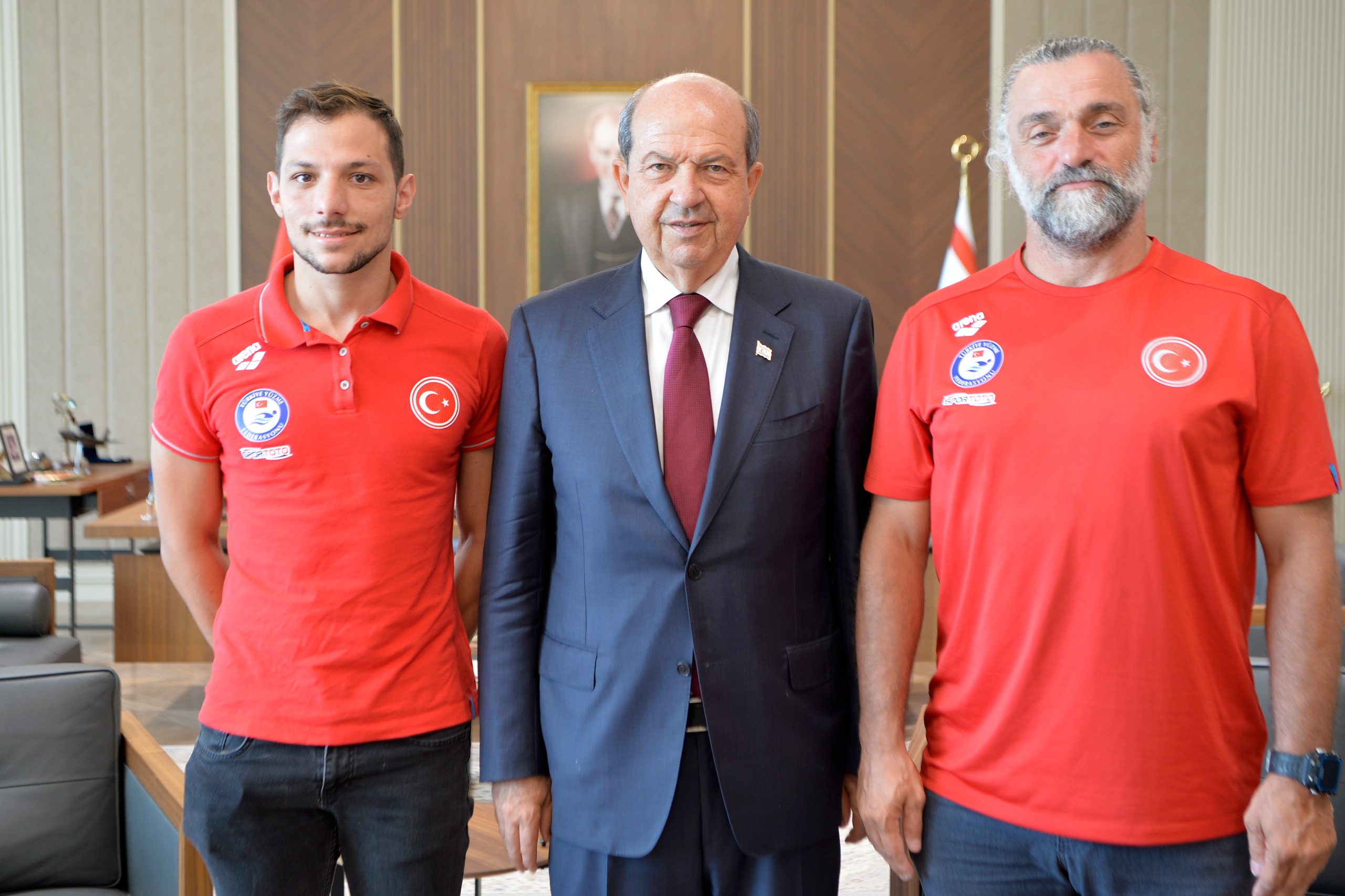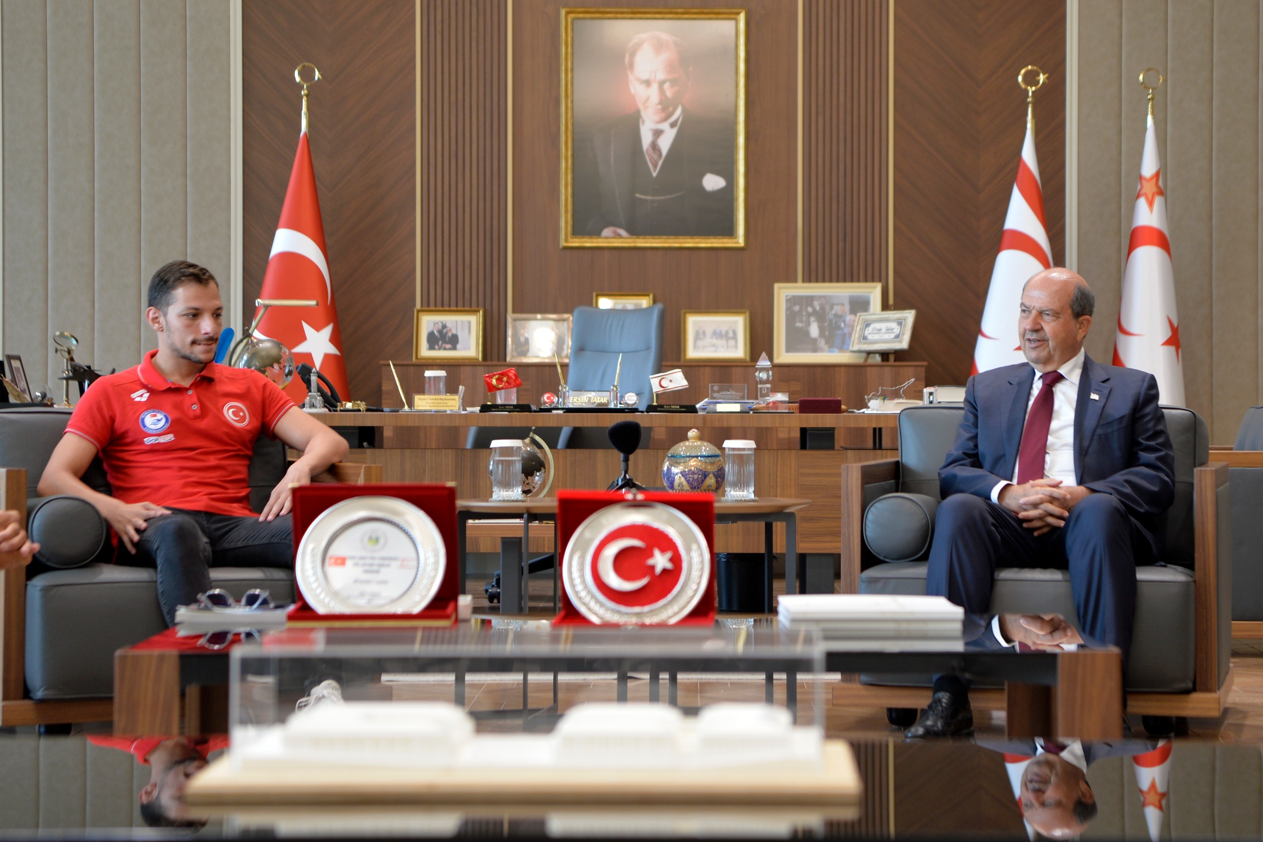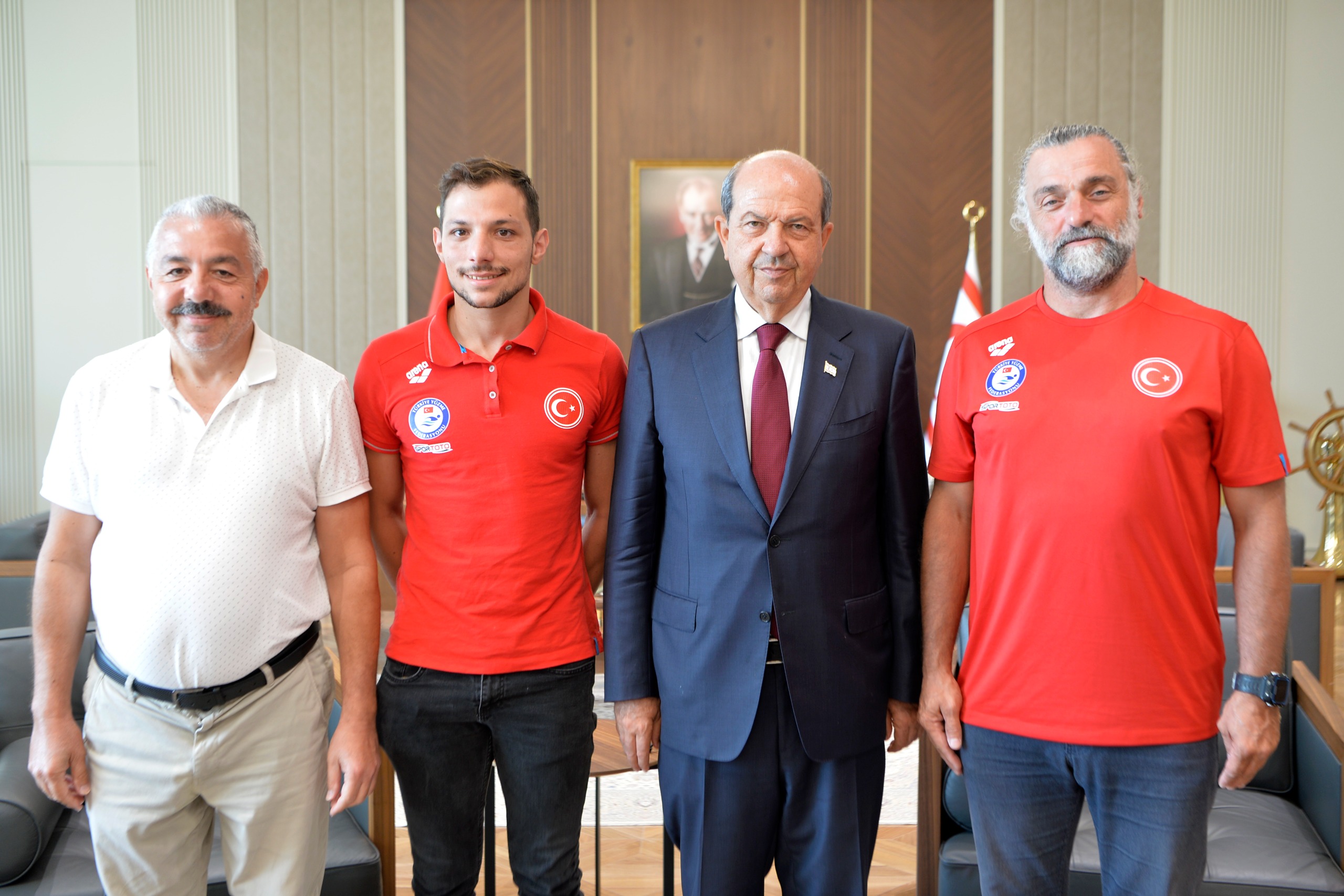 Lefkoşa, 4 Ağustos 25 (TAK): Cumhurbaşkanı Ersin Tatar, Kıbrıslı Türk milli yüzücü Doğukan Ulaç’ı makamında kabul etti.