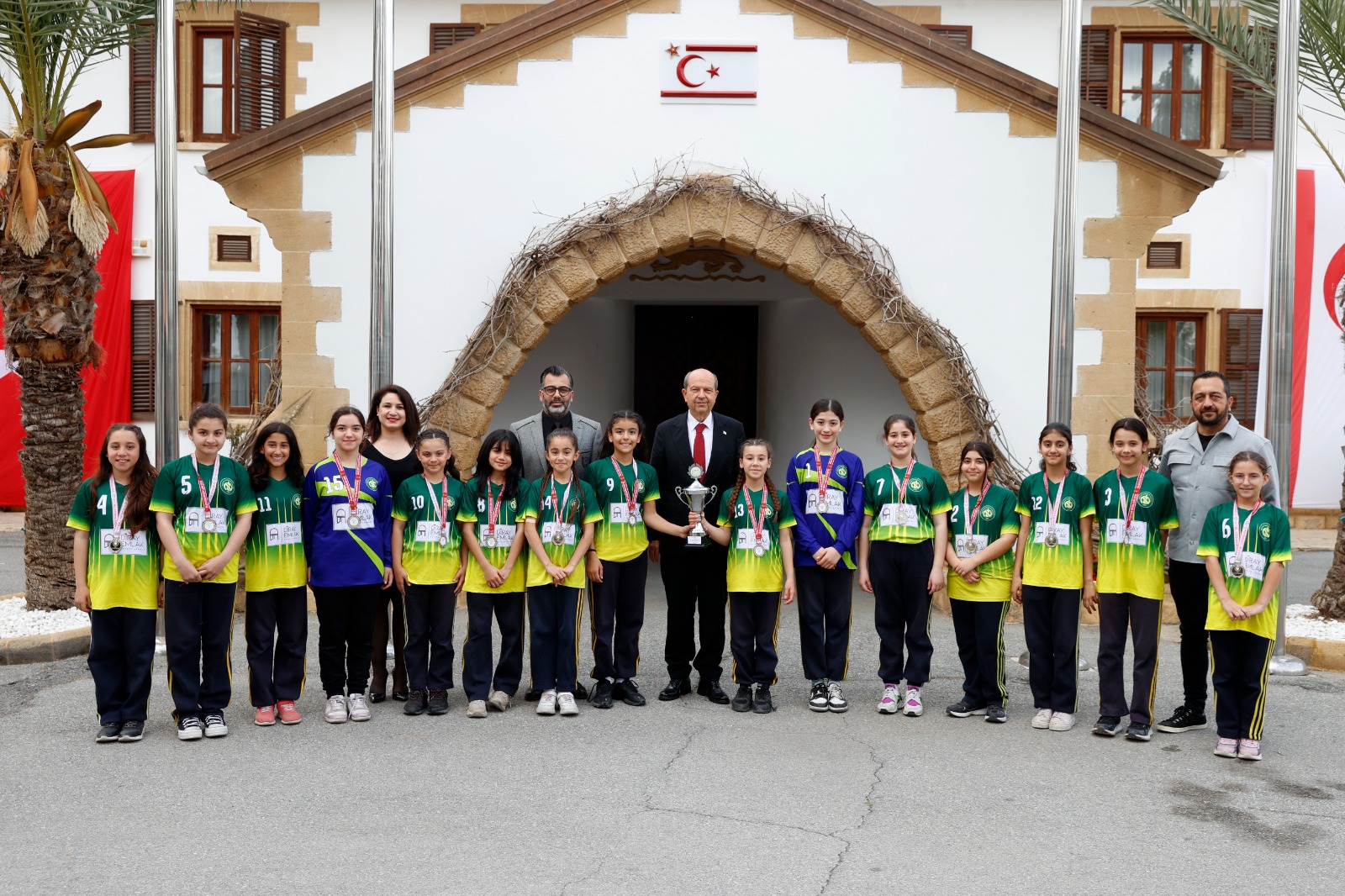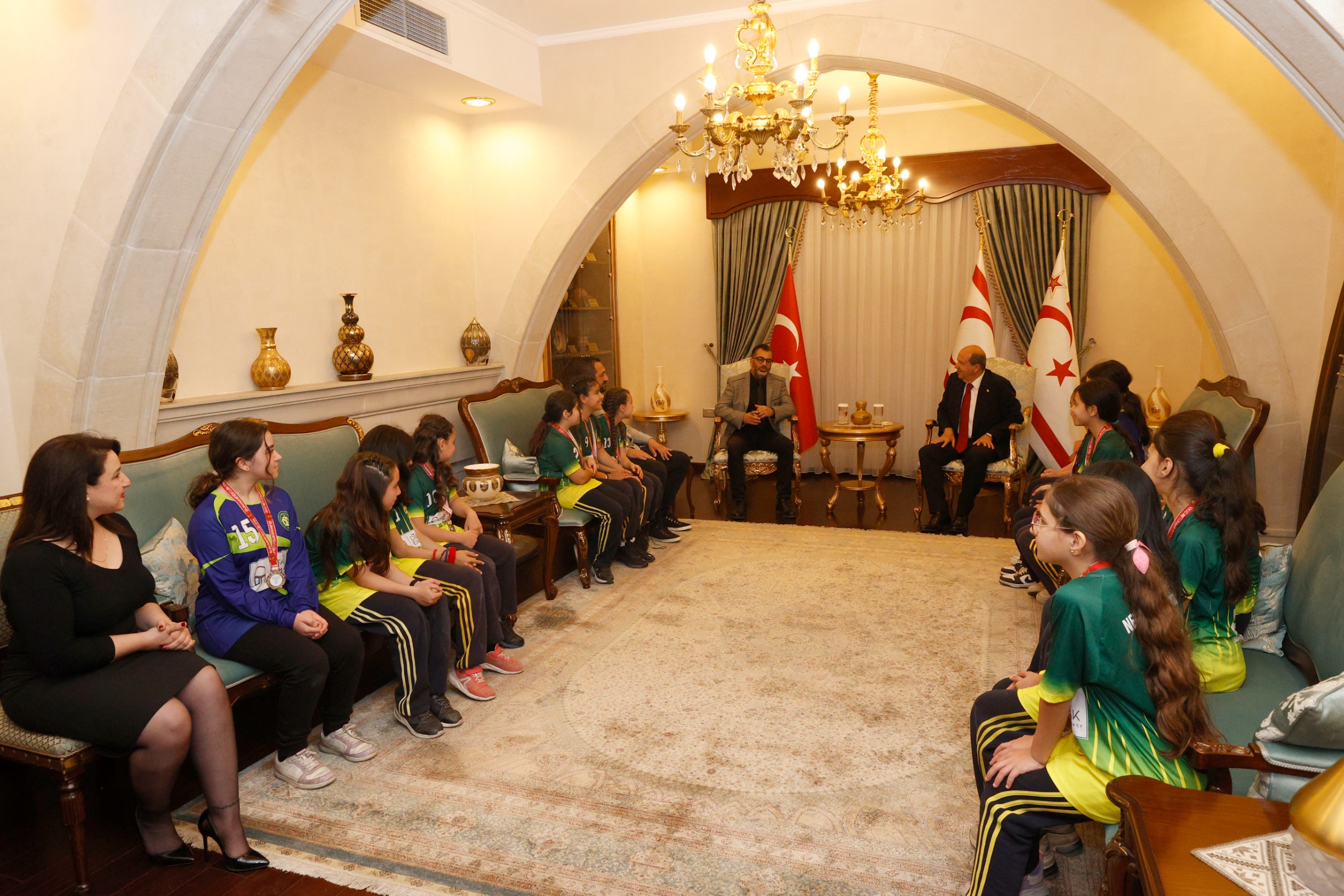 Lefkoşa, 19 Mart 24 (TAK): Cumhurbaşkanı Ersin Tatar, Necati Taşkın İlkokulu hentbol takımı, okul idaresi ve öğretmenlerini kabul etti
