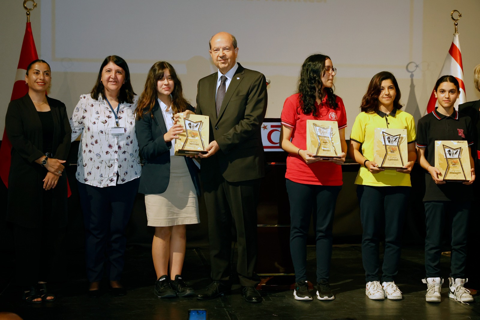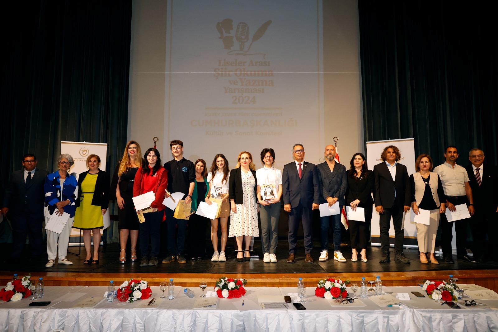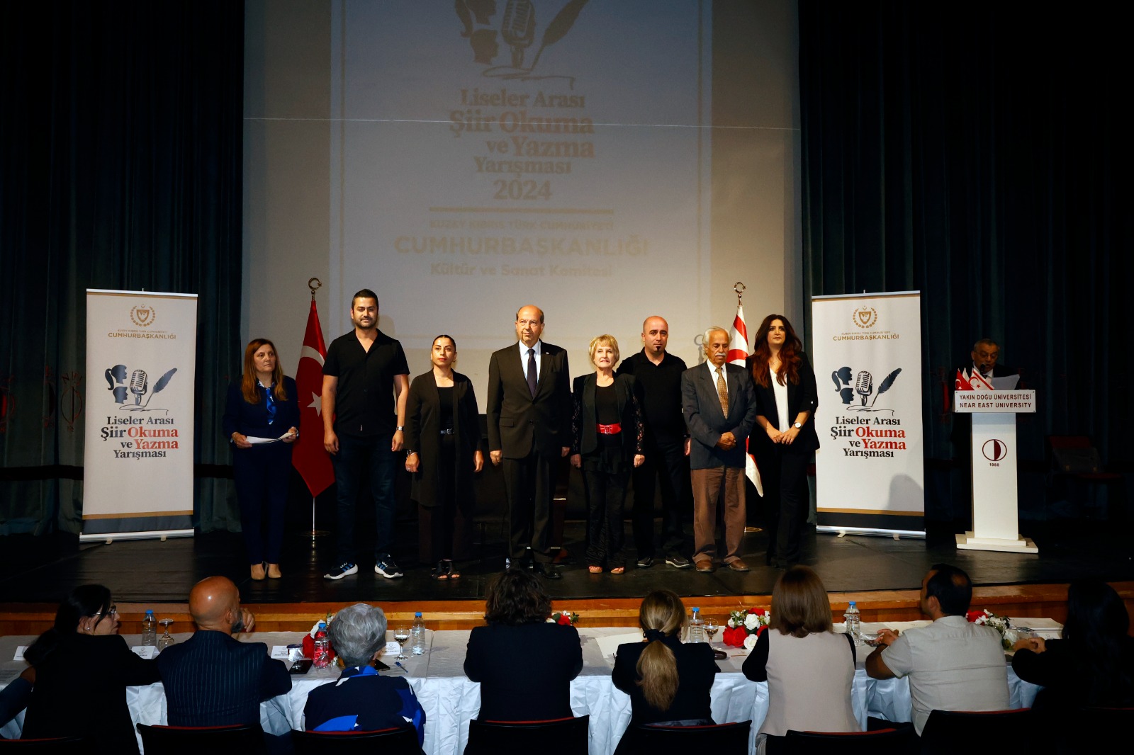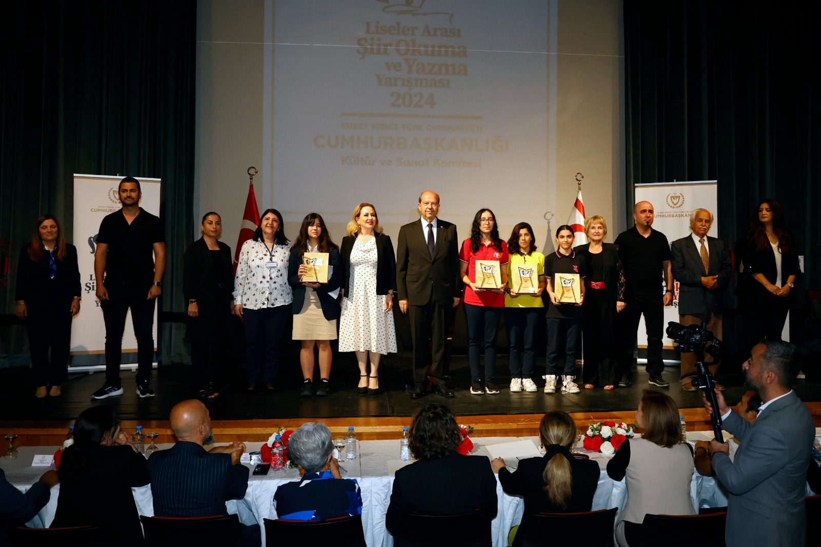 Lefkoşa, 15 Mayıs 24 (TAK): Cumhurbaşkanı Ersin Tatar, eşi Sibel Tatar ile birlikte, “Liseler Arası Şiir Okuma Yazma Yarışması” etkinliğine katıldı.