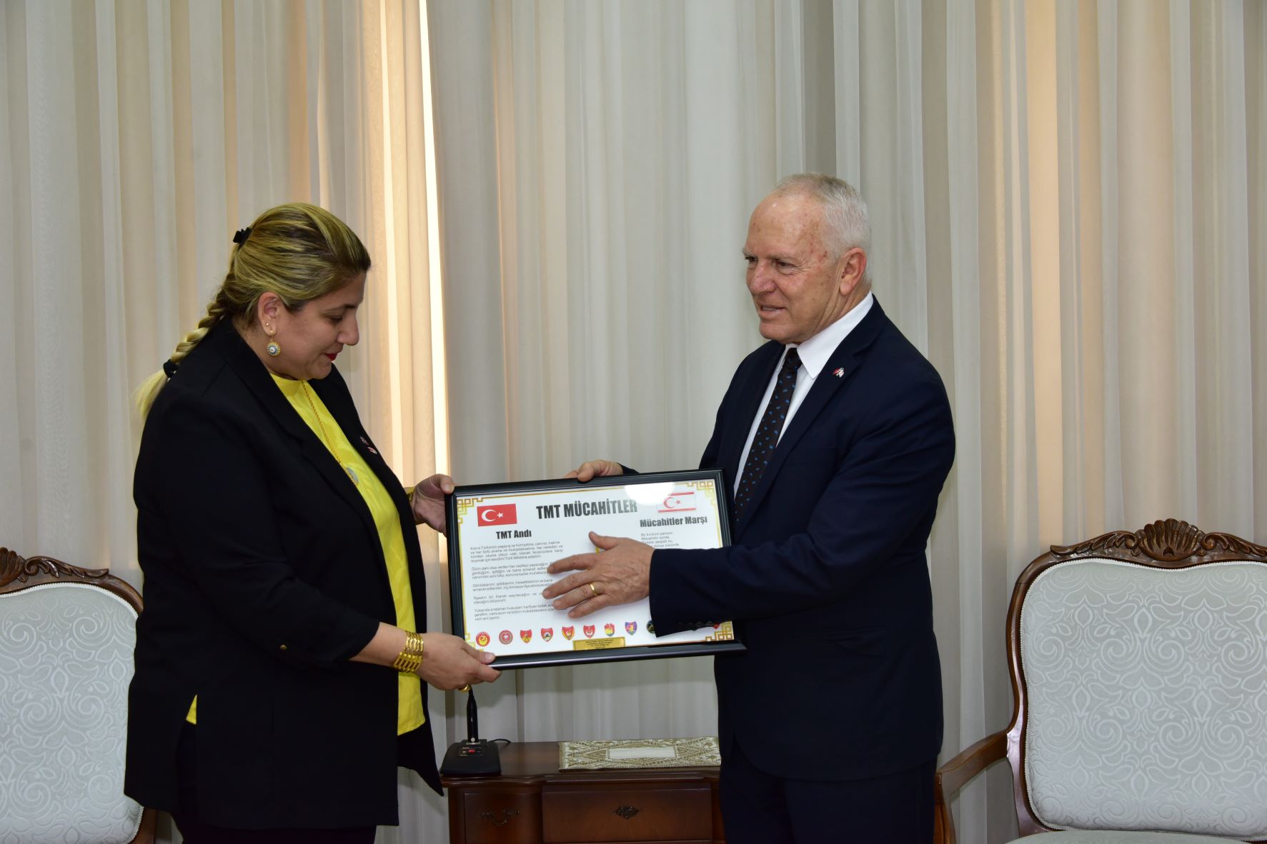 Lefkoşa, 8 Aralık 22 (TAK): Cumhuriyet Meclisi Başkanı Zorlu Töre, Mardin’den gelen 1974 Barış Harekatı gazilerini kabul etti.