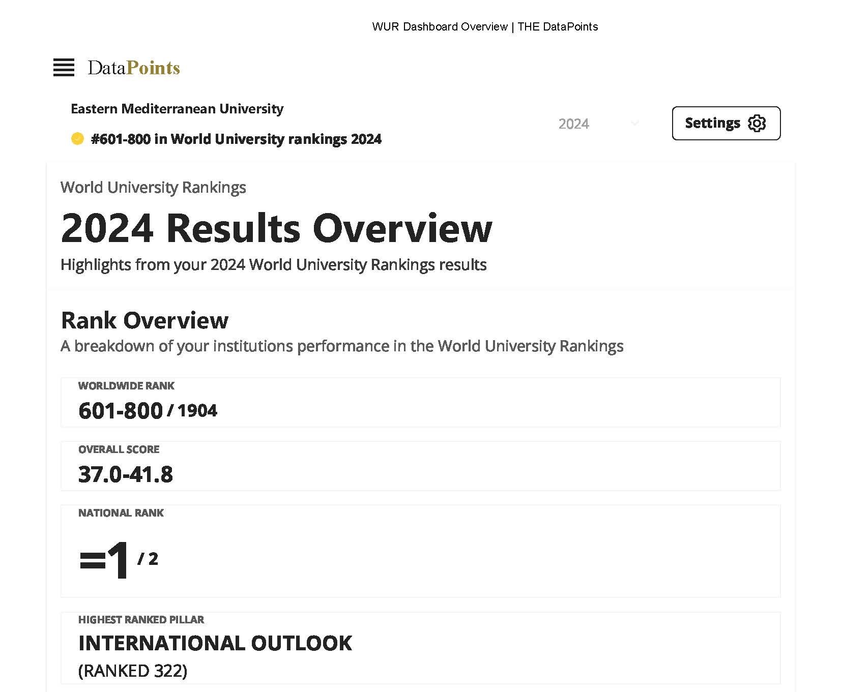 Lefkoşa, 28 Eylül 23 (TAK):Doğu Akdeniz Üniversitesi’nin (DAÜ), Dünya Üniversiteler Sıralamasında 601-800 bandında yer aldığı açıklandı.