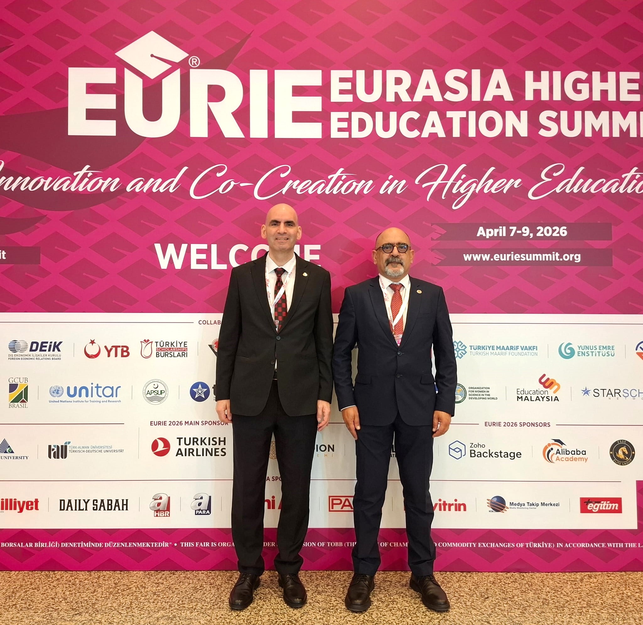 Lefkoşa, 17 Nisan 26 (TAK): Doğu Akdeniz Üniversitesi (DAÜ), İstanbul’da gerçekleştirilen 11. Avrasya Uluslararası Yükseköğretim Zirvesi’nde (EURIE 2026), DAÜ Tanıtım ve Kurumsal İletişimden Sorumlu Rektör Yardımcısı Prof. Dr. Ali Öztüren ile Uluslararası Akademik İlişkiler Koordinatörü Yrd. Doç. Dr. Cahit Ezel’in katılımıyla temsil edildi.