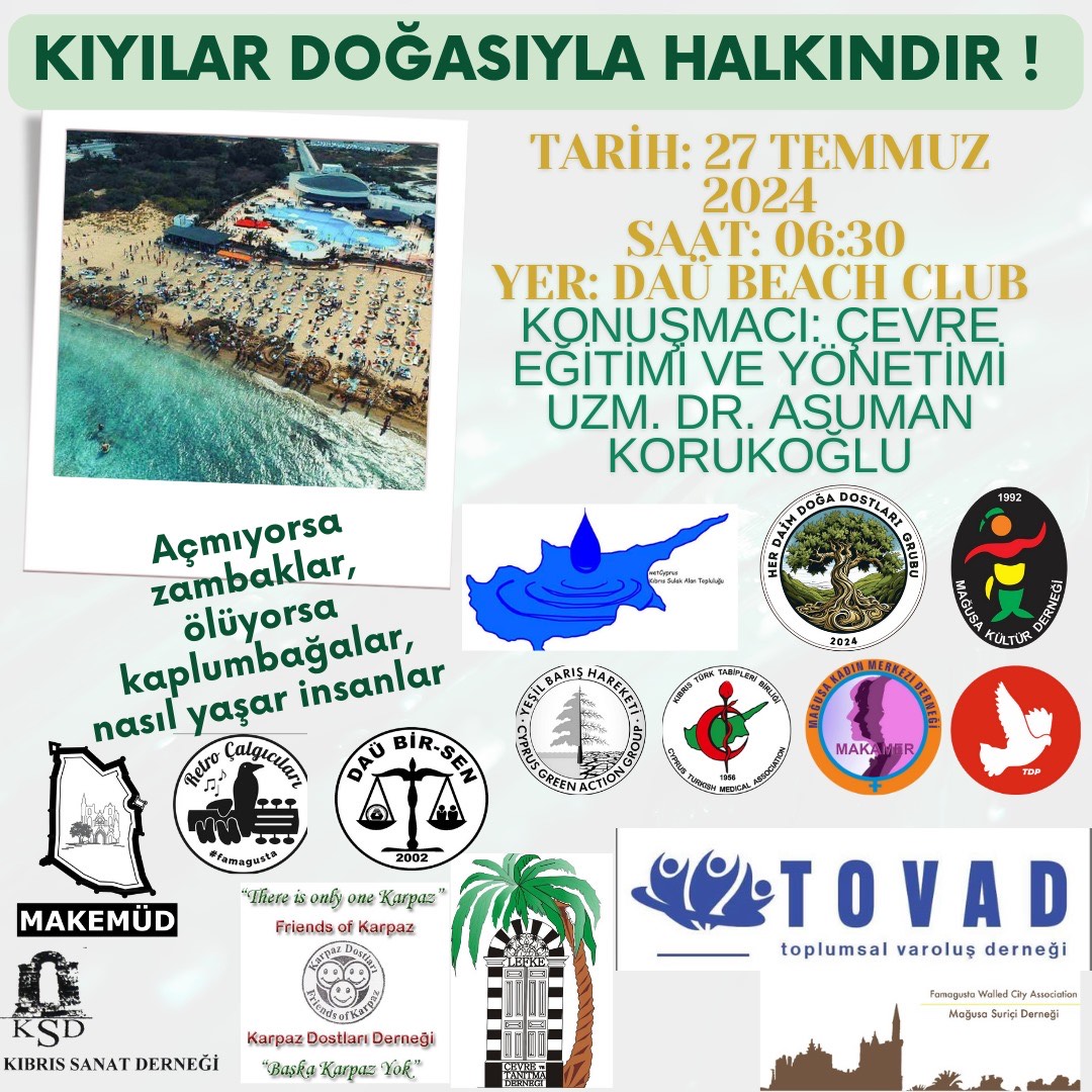 Lefkoşa, 26 Temmuz 24 (TAK): Bazı sivil toplum örgütleri yarın DAÜ Beach Club sahilinde, sahil bitkileri ve kaplumbağa yuvaları