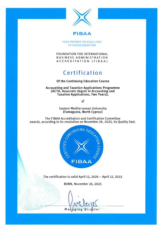 Şubat 26 (TAK): Doğu Akdeniz Üniversitesi (DAÜ), Muhasebe ve Vergi Uygulamaları Ön Lisans Programı ile üç yıllık Muhasebe ve Vergi Uygulamaları