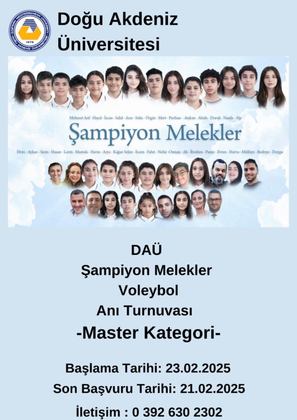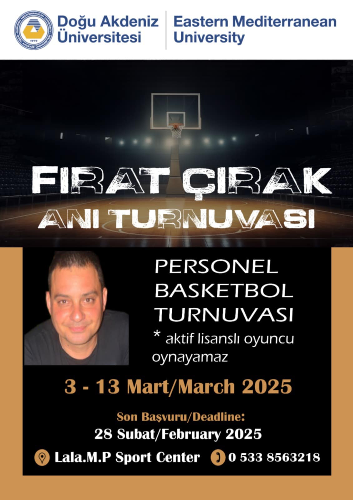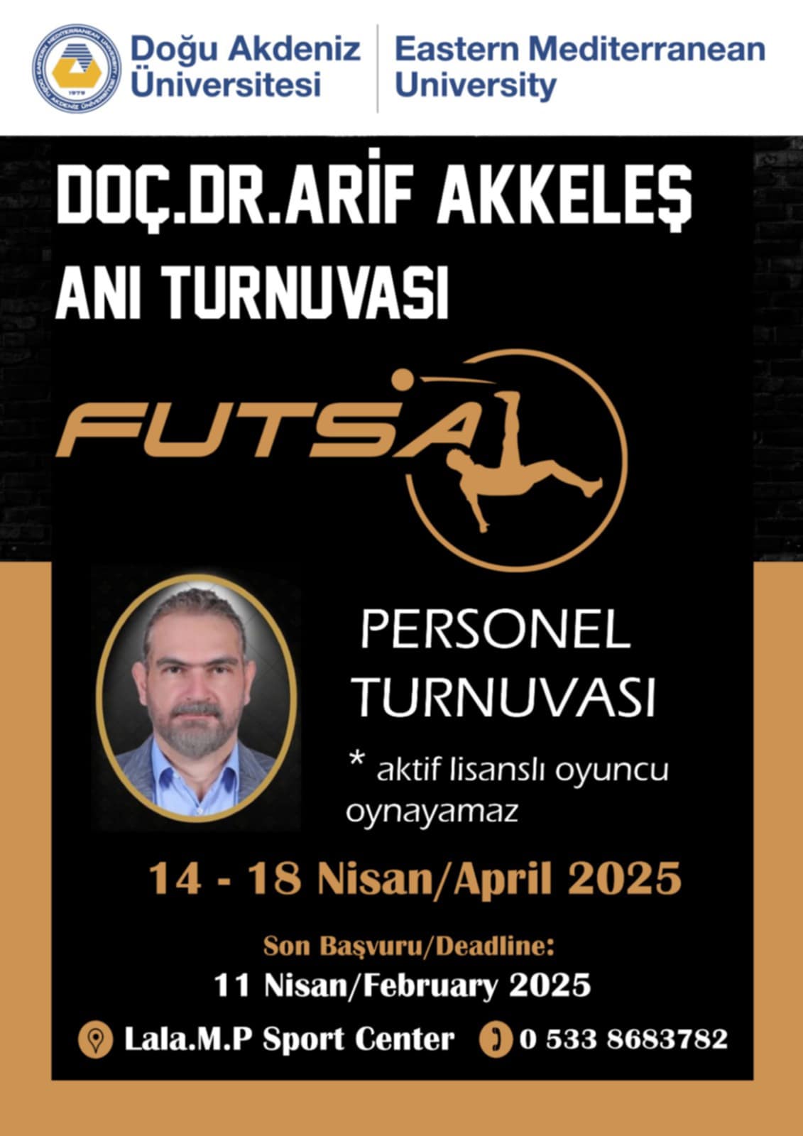Lefkoşa, 14 Şubat 25 (TAK): Doğu Akdeniz Üniversitesi (DAÜ) Spor İşleri Müdürlüğü, hayatını kaybeden DAÜ personeli ve Şampiyon Melekler anısına "Vefa Turnuvaları" düzenliyor.