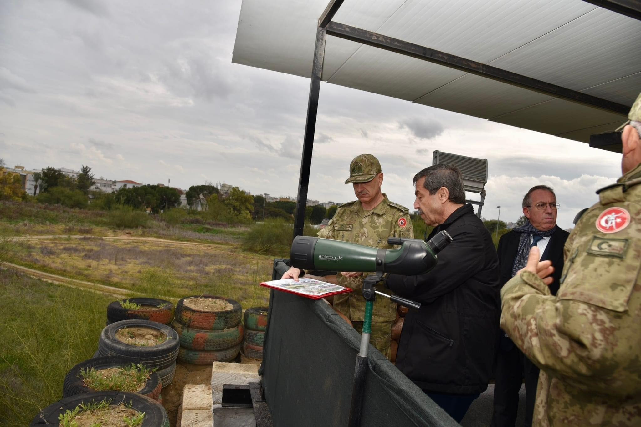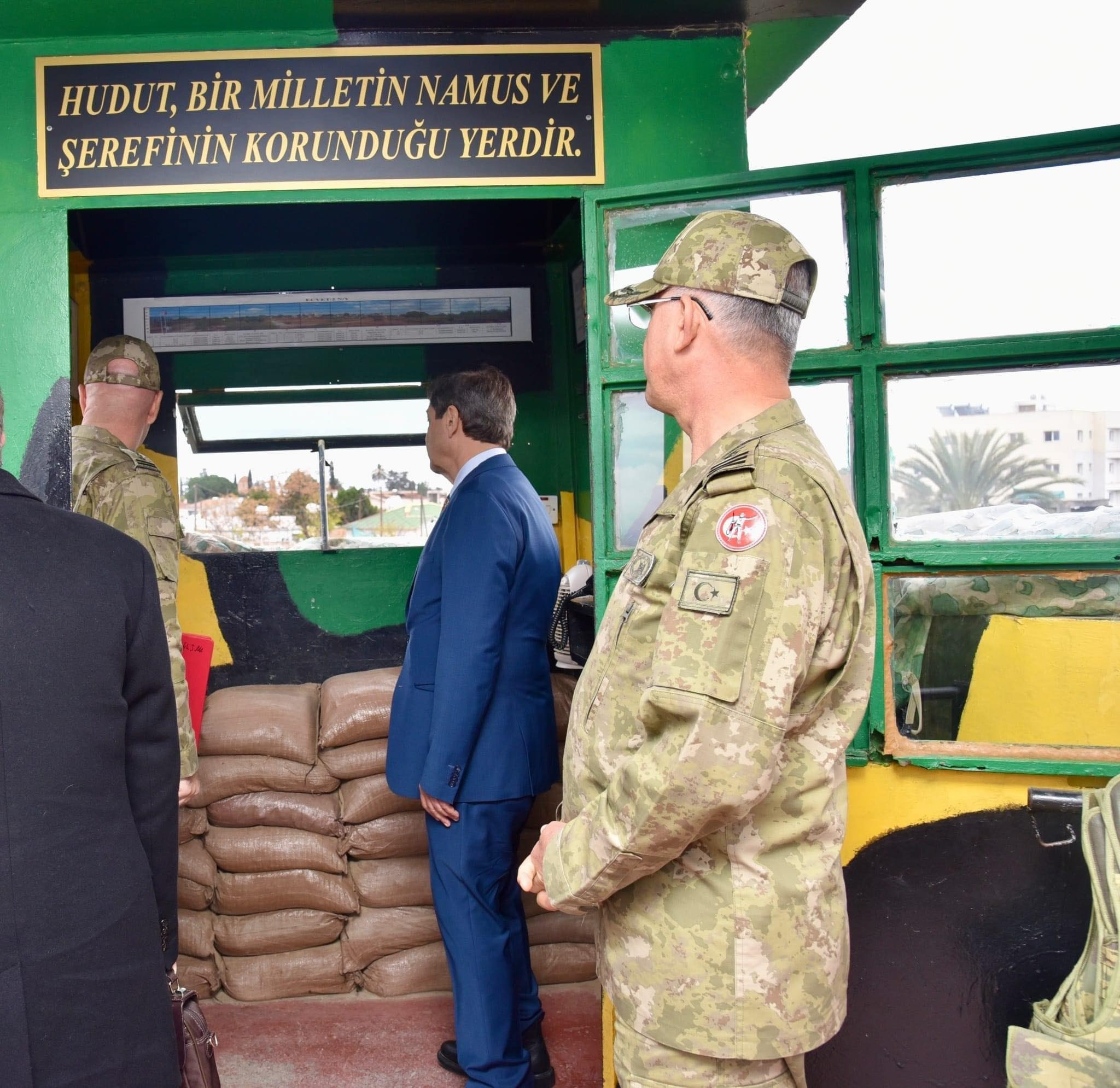 Lefkoşa, 19 Ocak 23 (TAK): Dışişleri Bakanı Tahsin Ertuğruloğlu, Güvenlik Kuvvetleri Komutanı Tümgeneral Zorlu Topaloğlu ile Lefkoşa sınır bölgesinde incelemelerde bulundu.