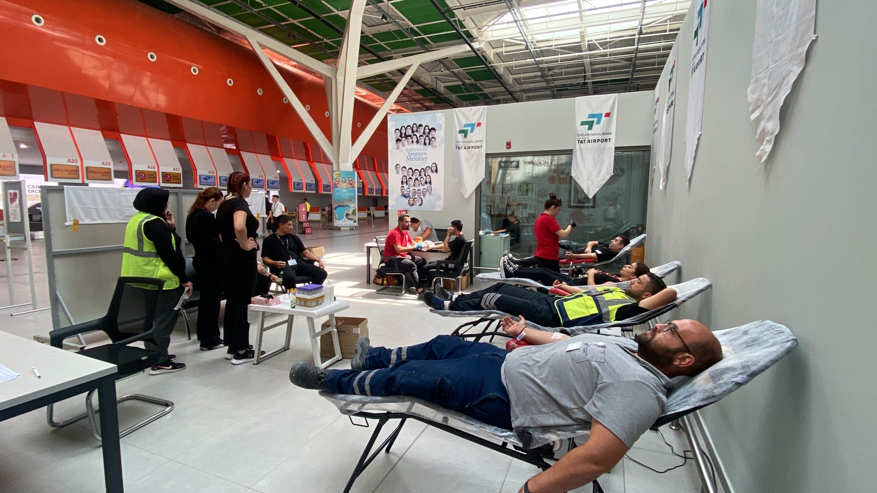 Ercan Havalimanı’nda, “Her damla kan, bir candır” sloganıyla kan bağış kampanyası düzenlendi
