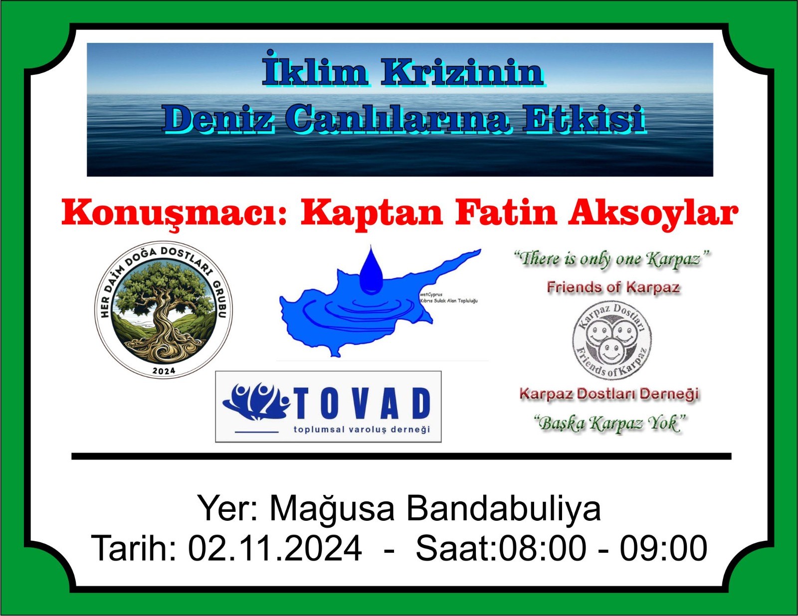 Lefkoşa, 1 Kasım 24 (TAK): Gazimağusa’da yarın “iklim krizinin denizlerdeki canlılara etkisinin” konuşulacağı sunum yapılacak.