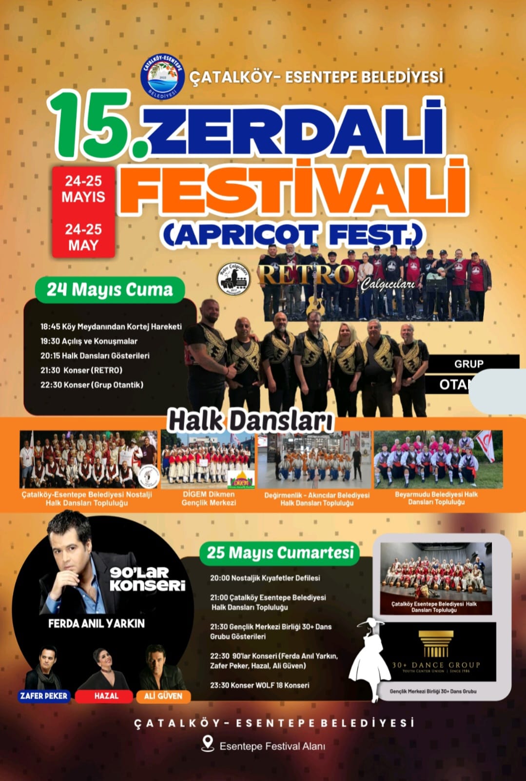 Lefkoşa, 22 Mayıs 24 (TAK): Çatalköy -Esentepe Belediyesi'nin organize ettiği Geleneksel 15. Zerdali Festivali, cuma ve cumartesi günleri Esentepe festival alanında yapılacak.