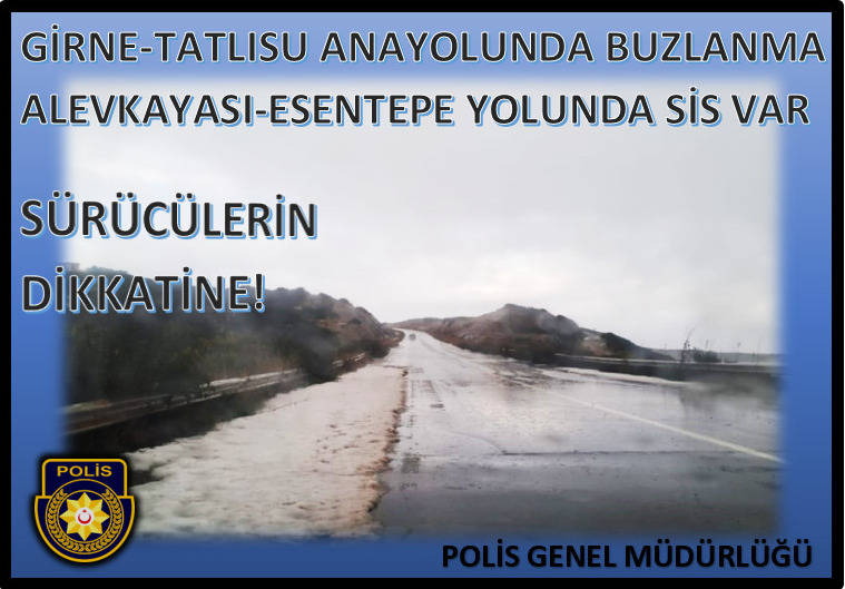 Girne - Tatlısu Anayolunda buzlanma, Alevkayası - Esentepe Yolunda sis var...