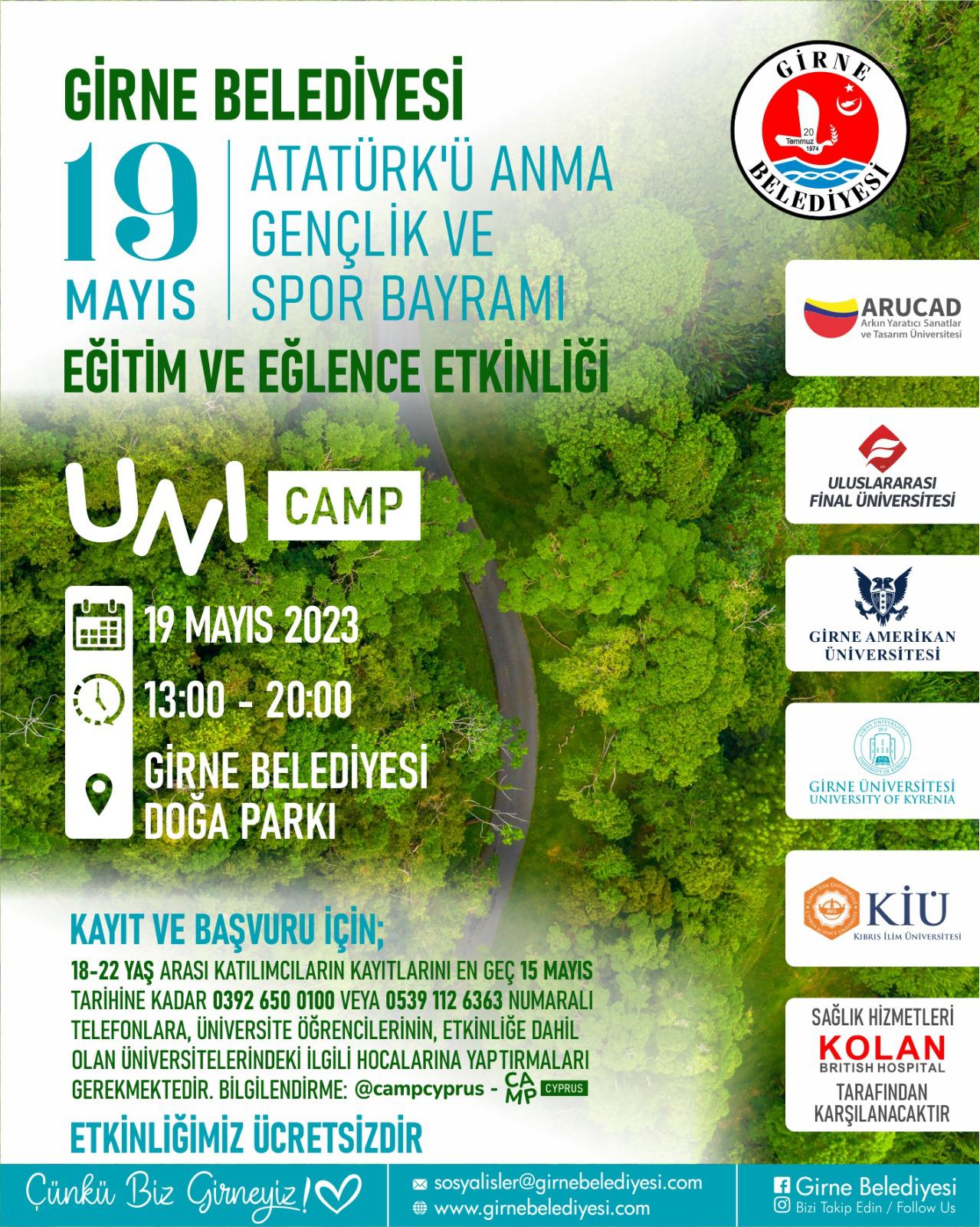 Girne Belediyesi Doğa Parkı, 19 Mayıs’ta ‘UniCamp’ etkinliği gerçekleştiriyor