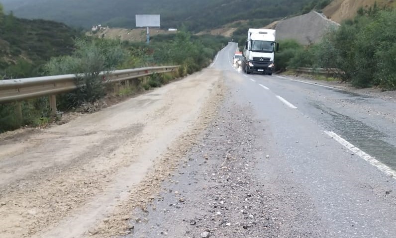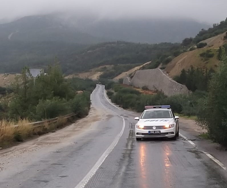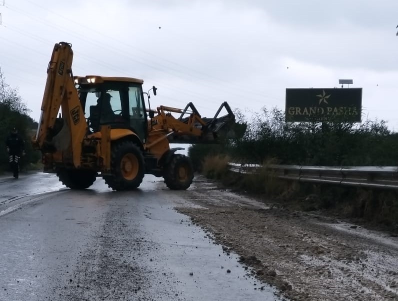 Lefkoşa, 16 Ocak 23 (Tak): Girne-Değirmenlik ana yolunda yağmur nedeniyle taş ve toprak biriktiğinden sürücülerin dikkati olmaları istendi.