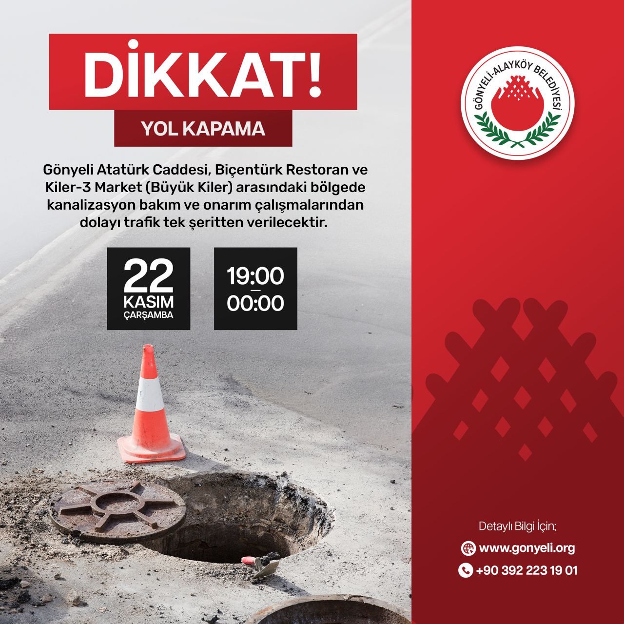 Gönyeli Atatürk Caddesi’nde bu akşam trafik tek şeritten verilecek