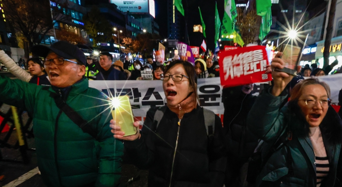 Ankara, 5 Aralık 2024 (TAK): Güney Kore'de Devlet Başkanı Yoon Suk Yeol'un istifasını talep eden sivil toplum kuruluşu üyeleri, gösterilerini ikinci gününde de sürdürdü.